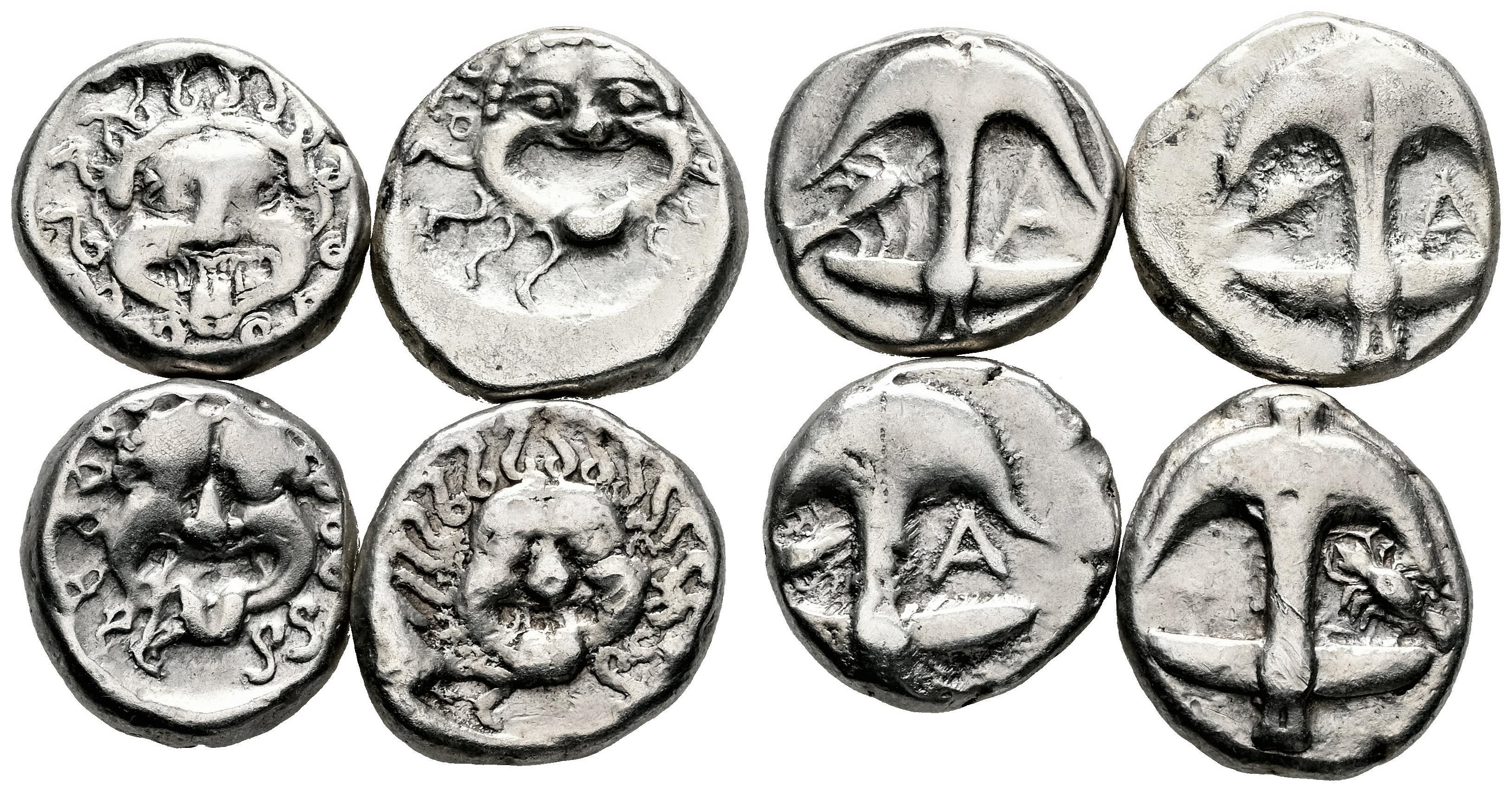 Lote de 4 monedas de Grecia antigua. Dracmas de Apolonia Pontika, Tracia. 450-400 BC. Ag. Es imprescindible un riguroso examen. SOLO ENVÍO A ESPAÑA PENÍNSULA. NO SE ADMITE DEVOLUCIÓN. MBC-/MBC. Est...160,00.
