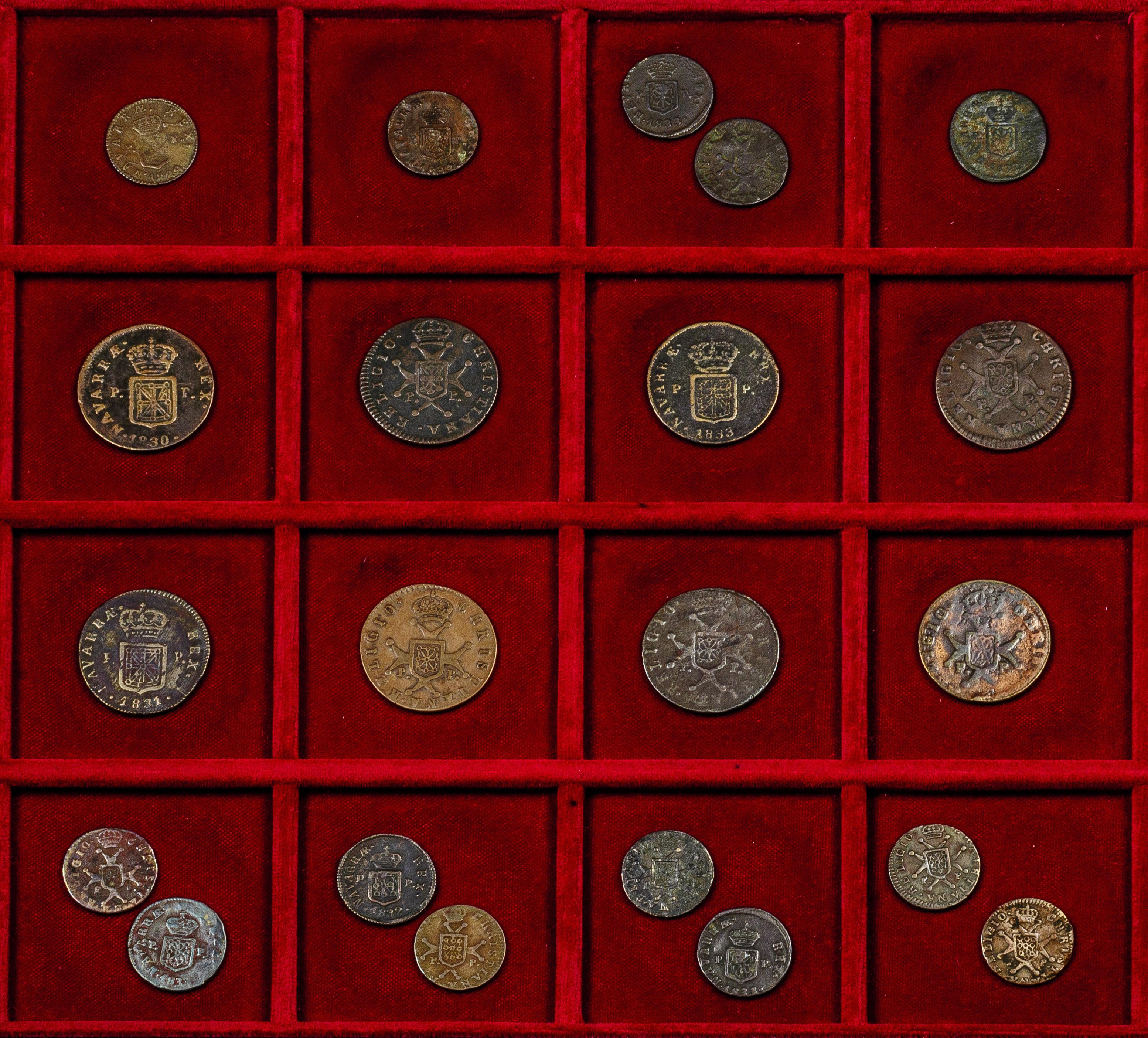 Lote de 17 monedas de Pamplona acuñadas en cobre durante el reinado de Fernando VII; 1 maravedí (9) y 3 maravedís (8), de diversas fechas. Es imprescindible un riguroso examen. SOLO ENVÍO A ESPAÑA PENÍNSULA. NO SE ADMITE DEVOLUCIÓN. BC/BC+. Est...150,00.