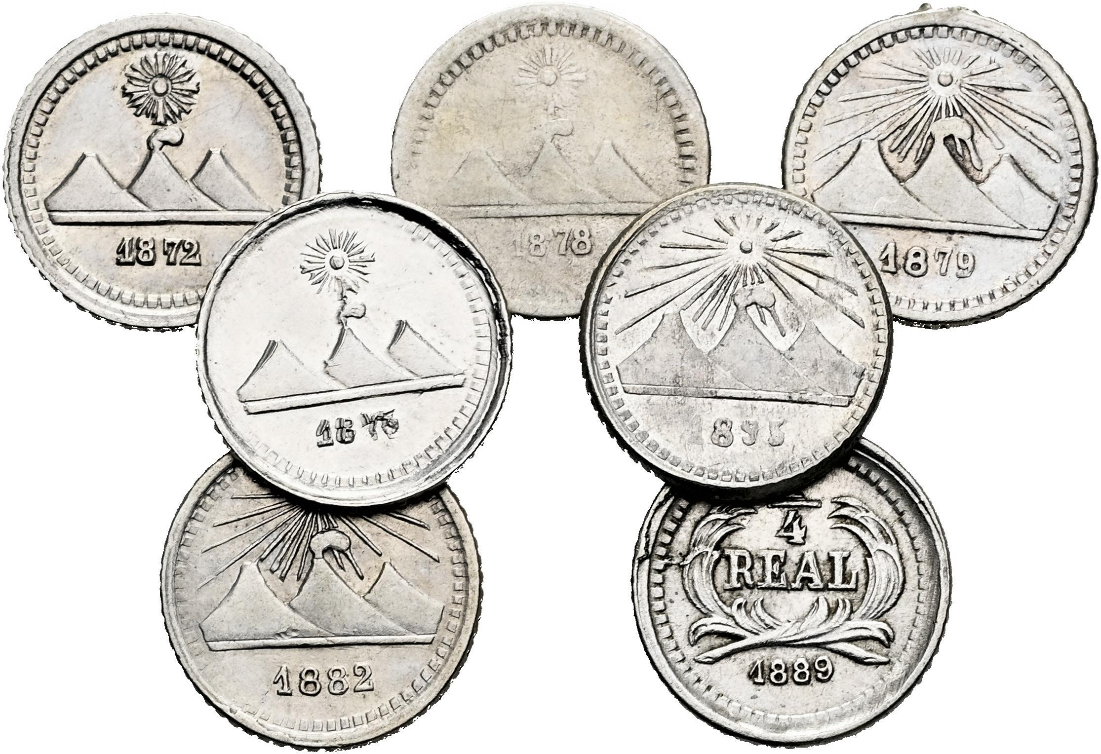 Lote de 7 monedas de Guatemala. Todas de 1/4 Real 1872, 1873, 1878, 1879 1882, 1889 y 1895. Ex Monedalia 6 (30/11/2021), lote 1053. Ag. Es imprescindible un riguroso examen. SOLO ENVÍO A ESPAÑA PENÍNSULA. NO SE ADMITE DEVOLUCIÓN. MBC-/EBC. Est...60,00.