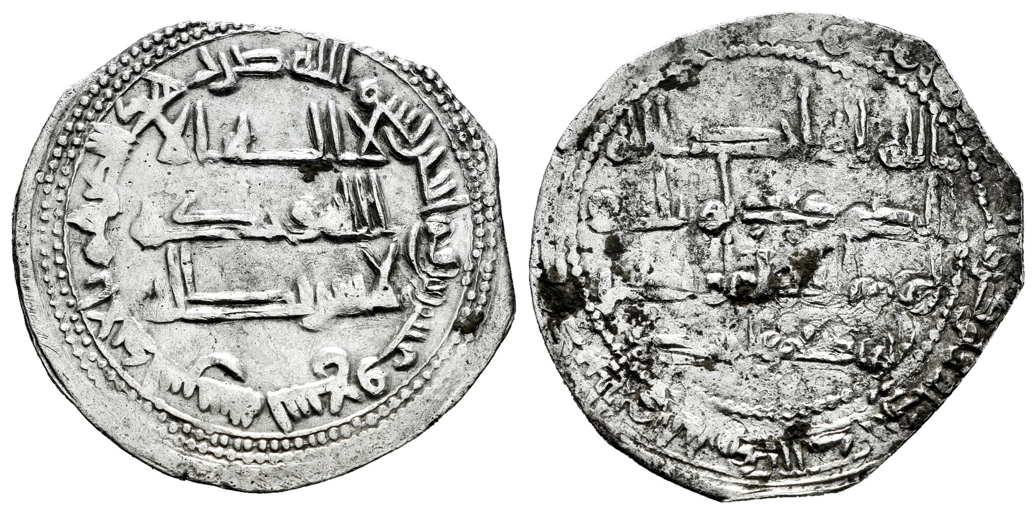 Emirato Independiente. Abd Al-Rahman II. Dirham. 229 H. Al-Andalus. (Vives-193). (Miles-121o). Ag. 2,24 g. Ligeramente recortada. MBC+/BC. Est...30,00.