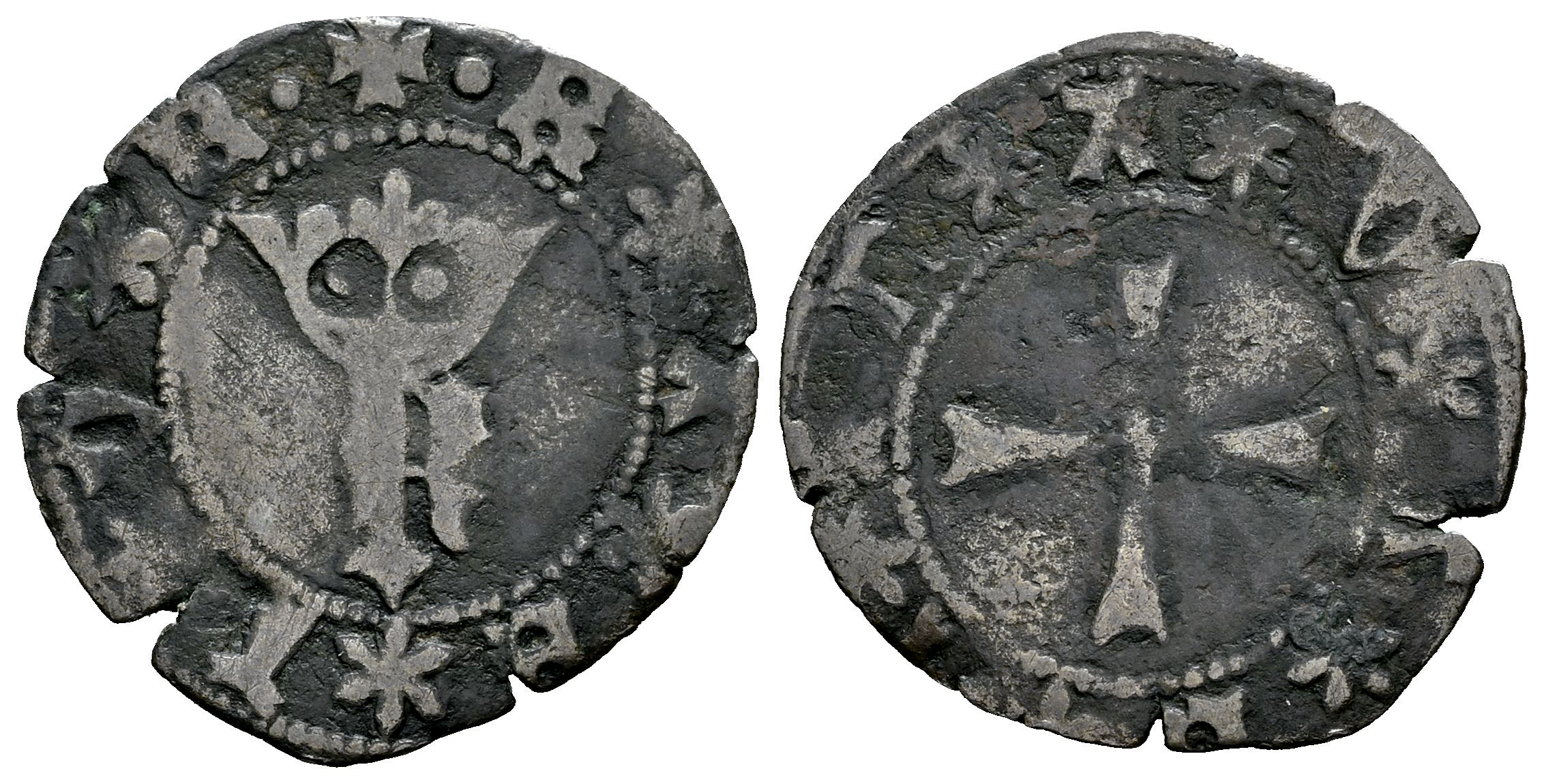 Reino de Navarra. Carlos IV, Príncipe de Viana (1441-1461). Cornado. Navarra. (Ros-3.18.3/1). (Cru V.S-260 var.). Anv.: + · K ✱ A ✱ R ✱ T ✱ V ✱ Ƨ · . K gótica coronada. Rev.: + N ✱ A ✱ V ✱ A ✱ R ✱ E ✱ . Cruz. Ve. 0,94 g. La S de KARTVS está invertida. Escasa. MBC-. Est...90,00.