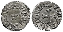 Reino de Navarra. Juan y Catalina (1483-1512). 1/2 cornado o Negrete. Navarra. (Ros-No cita). Anv.: + IONS · KATER · ¿N?. Corona real pequeña. Rev.: SIT · NOMEN · DOMIN. Cruz. Ve. 0,51 g. Aparentemente única e inédita. Vellón rico. Muy rara, más en esta conservación. MBC+. Est...180,00.