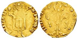 Corona de Aragón. Pedro IV (1336-1387). Florín. Perpignan. (Cru-384). (Cru C.G-2206). Au. 3,41 g. Marca: rosa de anillos. MBC. Est...350,00.