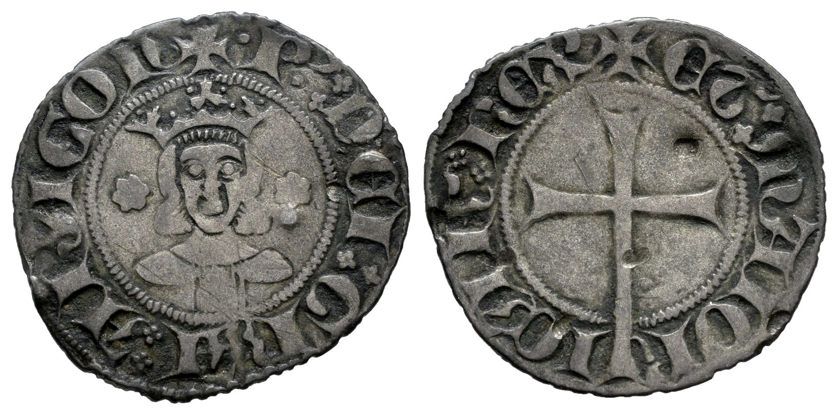 Corona de Aragón. Pedro III (1336-1387). Dobler. Mallorca. (Cru C.G-2265). (Cru V.S-453). Ve. 1,68 g. Suave pátina. Dos golpes en anverso. Muy rara. Ex Áureo 258 (20/03/2014), lote 1306. MBC-. Est...300,00.