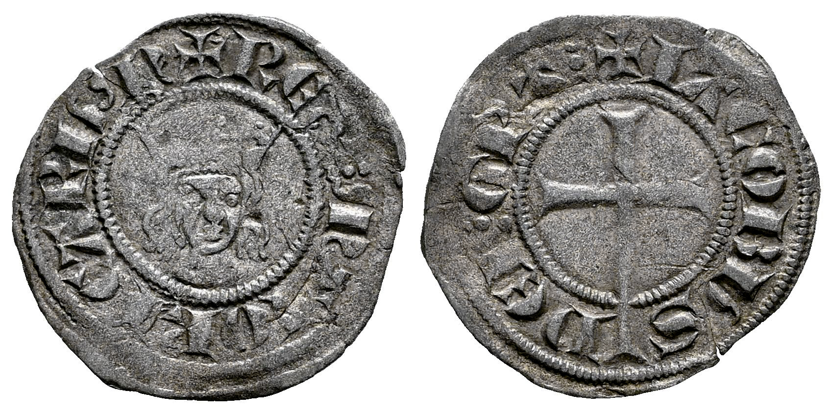 Corona de Aragón. Jaime II de Mallorca (1276-1285 y 1298-1311). Malla. Mallorca. (Cru V.S-540). (Cru C.G-2510). Anv.: + REX : MAIORICARUM. Busto de frente. Rev.: + IACOBUS / DEI︙GRA︙. Cruz. Ve. 0,38 g. Letras A sin travesaño. Escasa. MBC+. Est...150,00.