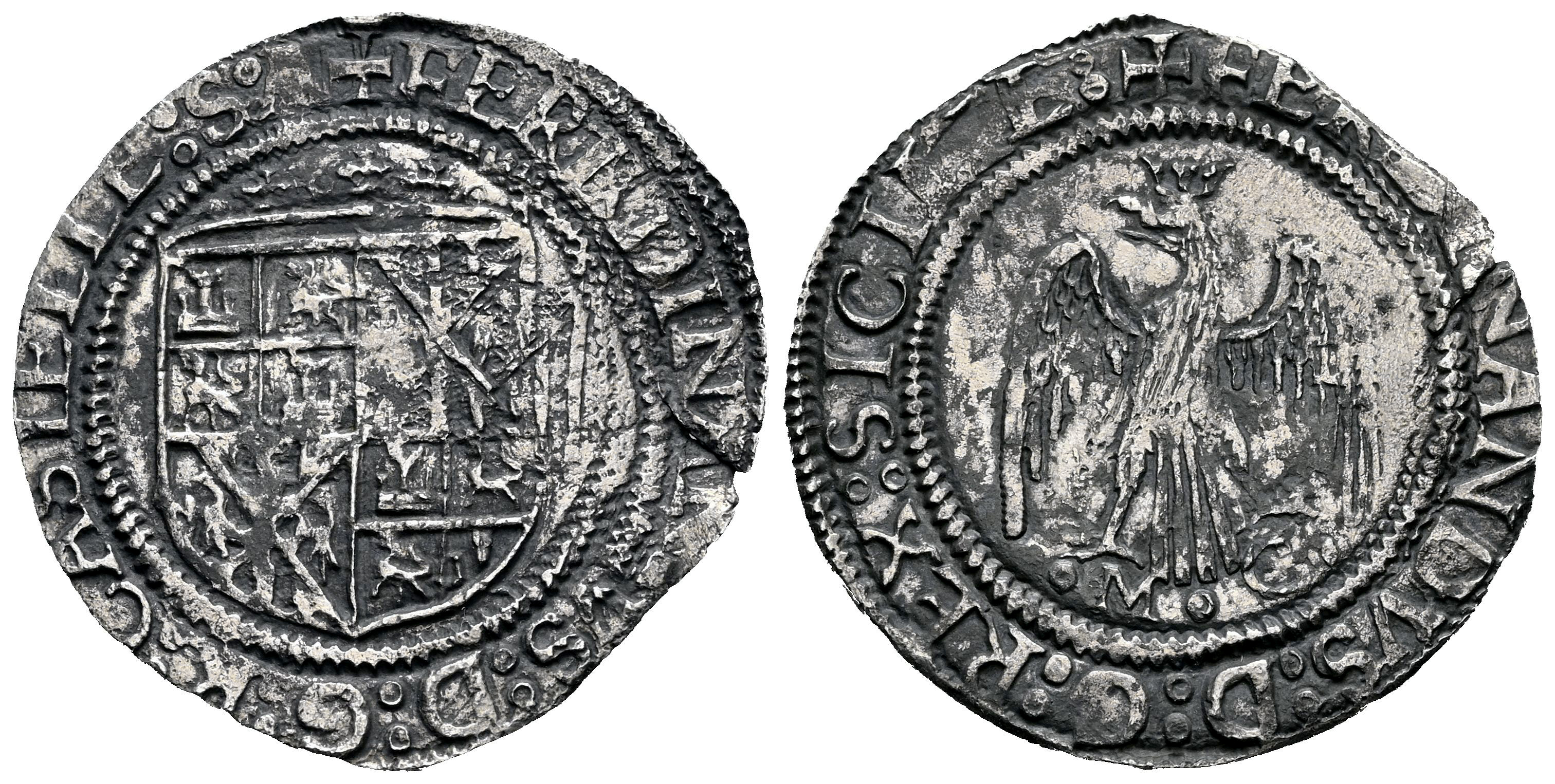 Corona de Aragón. Fernando II (1479-1516). Pirral. Messina. M-C. (Cru-1239). Ag. 3,22 g. Grieta. Ligeras oxidaciones. MBC. Est...75,00.