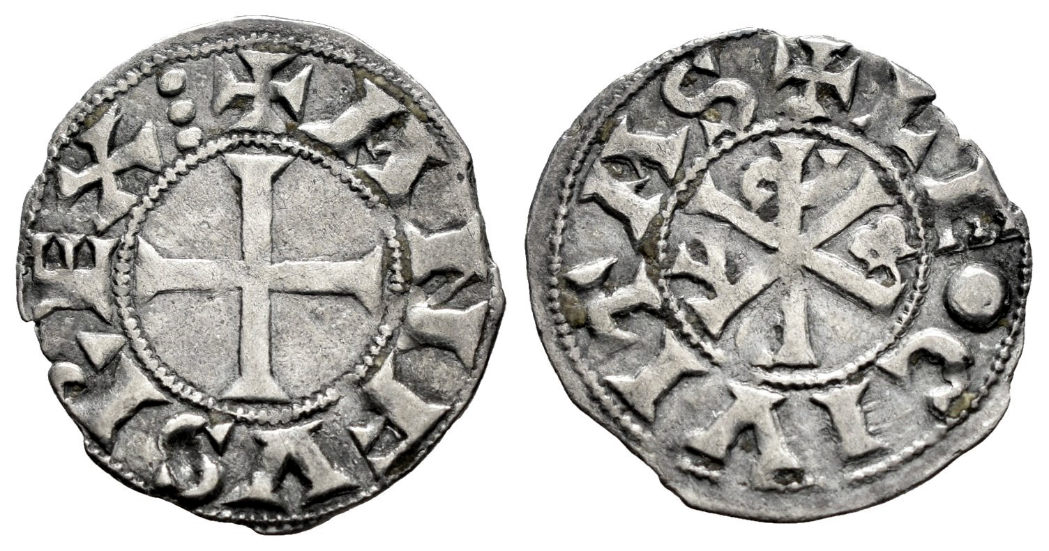 Reino de Castilla y León. Alfonso VI (1073-1109). Dinero. León. (Bautista-7.1 var.). (Imperatrix-A6:12.13 var.). Anv.: + ANFVS REX︙. Rev.: + LE● CIVITAS. Ve. 0,97 g. Inusual O de "LEO". Descartamos que pueda tratarse de la habitual O empastada ya que su diámetro es menor a las habituales. La S del crismón está en posición invertida. Suave pátina. Rara. MBC+. Est...180,00.