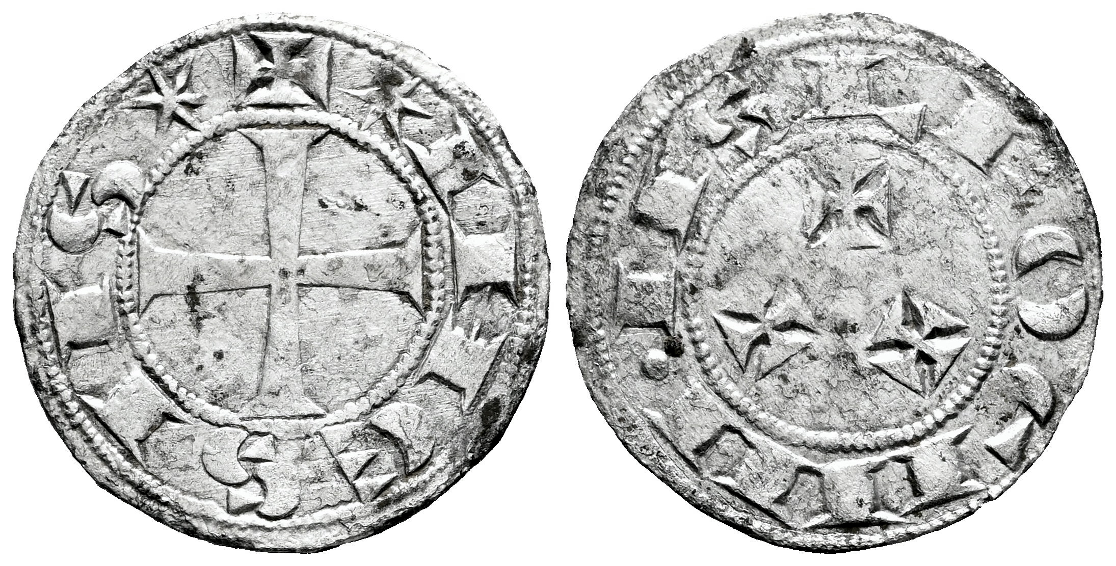 Reino de Castilla y León. Alfonso VII (1126-1157). Dinero. Abadía de Sahagún. Sahagún (León). (Bautista-131.1 var.). (Imperatrix-A7:76.1 var.). Anv.: ✶IHESVS✶. Cruz. Rev.: LEO CIVI·IIS. Tres cruces . Ve. 1,13 g. Letra O de LEO abierta. Buen ejemplar. Escasa. EBC-. Est...500,00.