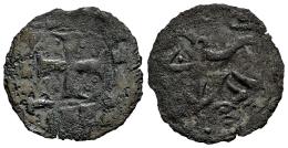 Reino de Castilla y León. Fernando II (1157-1188). Dinero. León. (Bautista-193). Ve. 0,53 g. Roel sobre león. Rara. BC. Est...150,00.