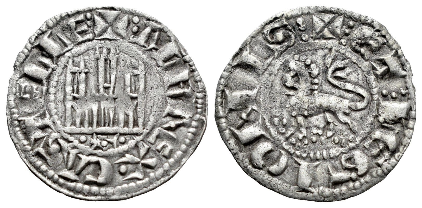Reino de Castilla y León. Alfonso X (1252-1284). Pepión. Sevilla. (Bautista-348.1). Anv.: + ︙ ALF REX · CASTELLE ︙. Rev.: +︙ ET︙LEGIONIS︙. Ve. 0,96 g. S entre puntos bajo el castillo. Curiosa "R" de "REX". MBC. Est...40,00.
