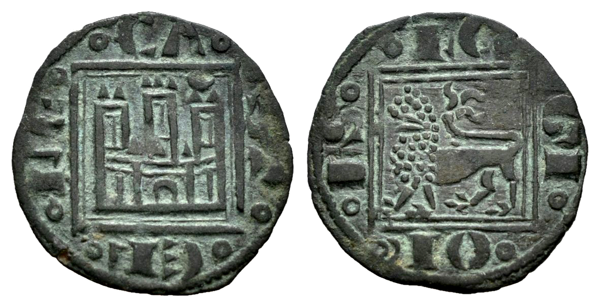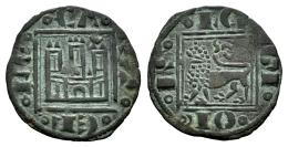 Reino de Castilla y León. Alfonso X (1252-1284). Óbolo. (Bautista-418.2). Ve. 0,48 g. Creciente invertido en la puerta del castillo y creciente en la torre derecha. EBC-/EBC. Est...40,00.