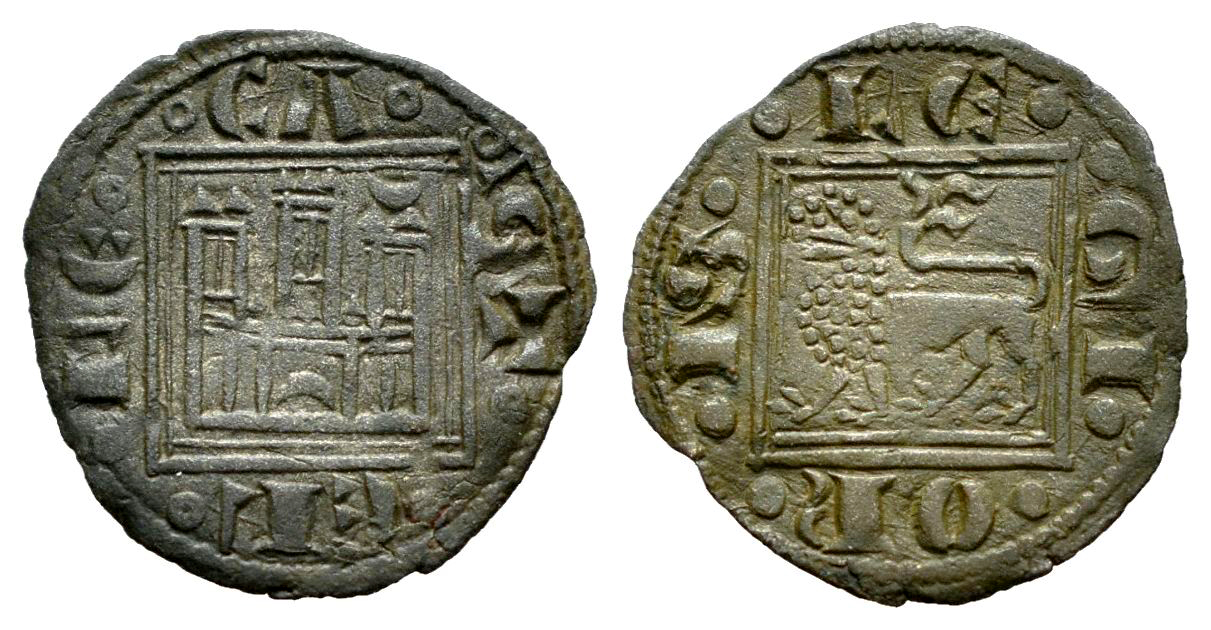 Reino de Castilla y León. Alfonso X (1252-1284). Óbolo. (Bautista-418.2). Ve. 0,42 g. Creciente invertido en la puerta del castillo y creciente en la torre derecha. MBC+/EBC. Est...30,00.