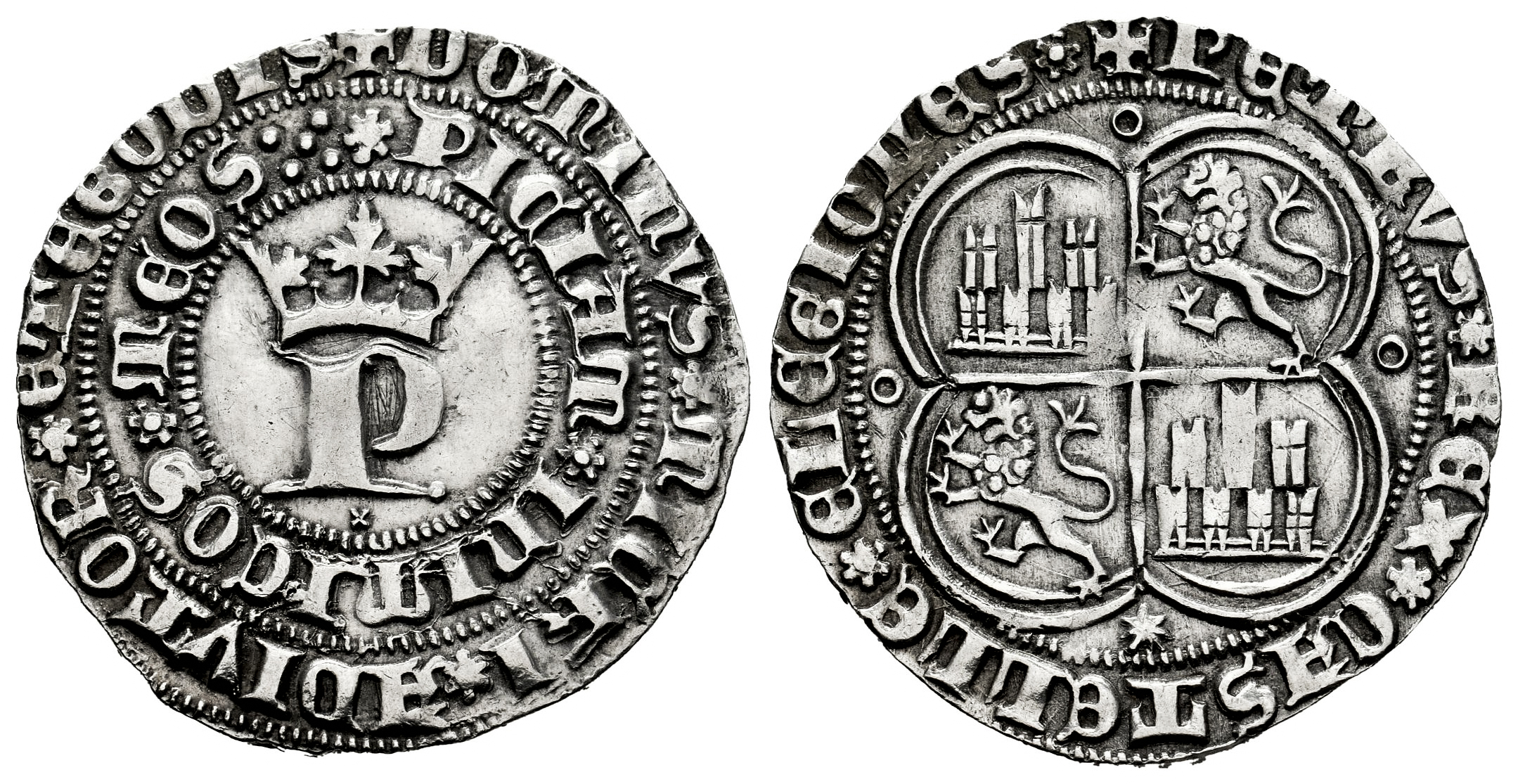 Reino de Castilla y León. Pedro I (1350-1368). 1 real. Coruña. (Bautista-529.6). (Imperatrix-P1:12.81). Anv.: + DOMINVS ✿ MIChI ✿ ADIVTOR ✿ ET EGO DIS / ✿ PICIAM ✿ INIMICOS ✿ MEOS :·: . Rev.: + PETRVS ✿ REX ✿ CASTELLE ✿ E LEGIONES ✿ . Ag. 3,55 g. Aspa bajo la P coronada. Venera bajo el cuartelado. Buen ejemplar. Rara. EBC-. Est...500,00.
