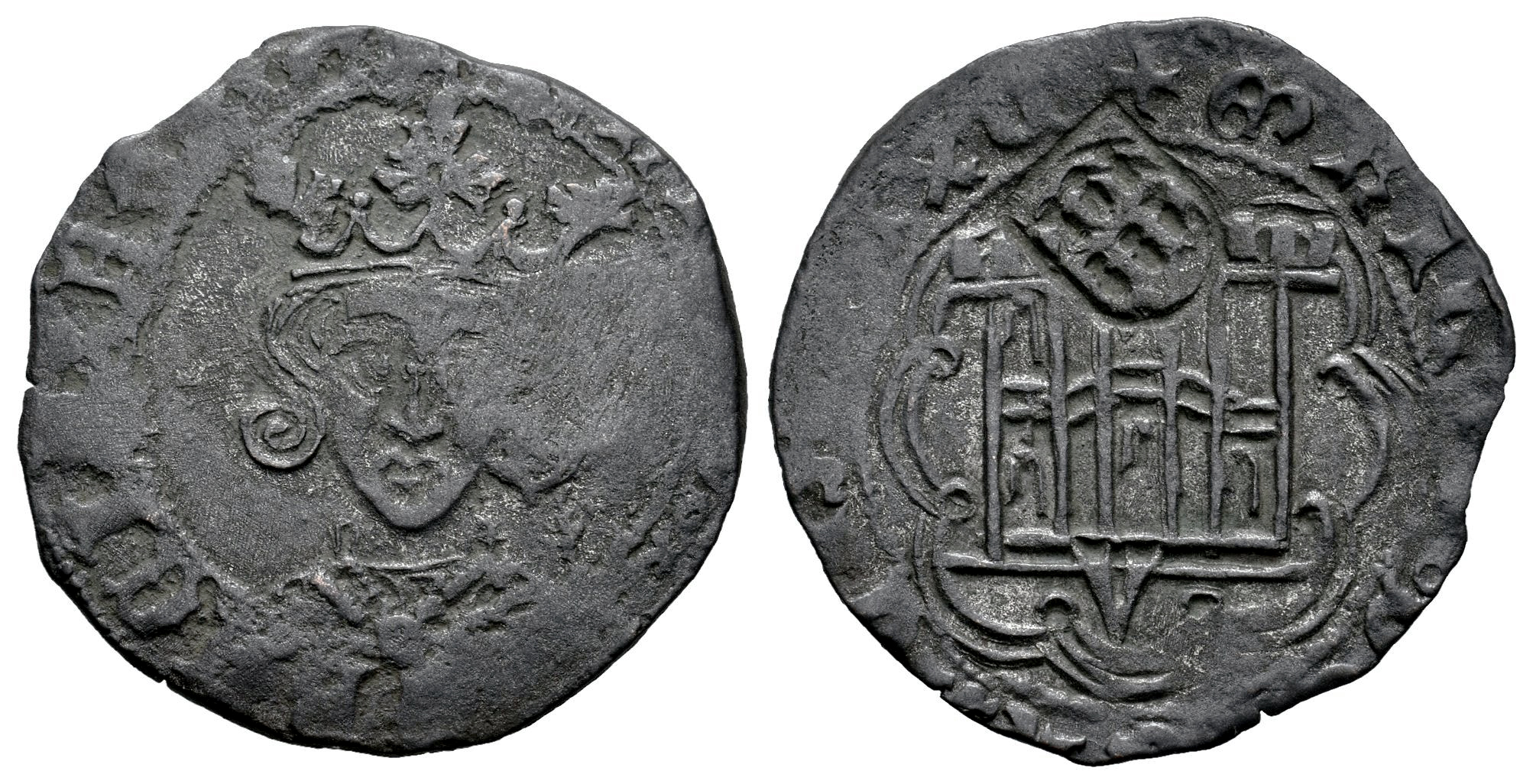 Reino de Castilla y León. Enrique IV (1454-1474). Cuartillo. Villalón. (Bautista-1028 var.). (Imperatrix-CM:D1.1/2). Anv.: ... GRACIA : REX : C. Rev.: + ENRIC(VS) : D(EI :) GRACIA (: R)EX D. Ve. 2,49 g. V bajo castillo. Contramarca de acueducto, de tres arcadas y dos niveles en escudete redondeado por su punta. Muy rara. MBC/MBC+. Est...200,00.