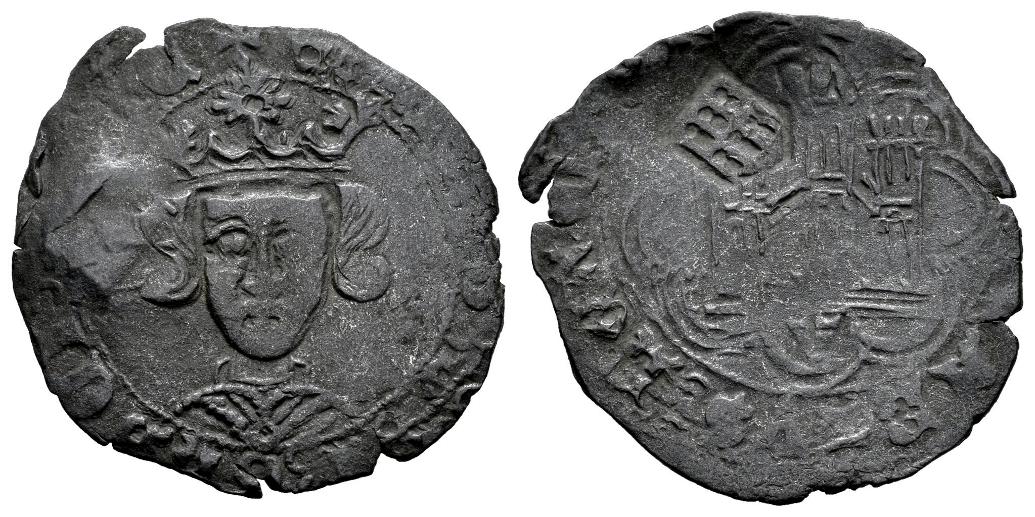 Reino de Castilla y León. Enrique IV (1454-1474). Cuartillo. Villalón. (Bautista-1028 var.). (Imperatrix-CM:D1.1/2). Anv.: ... S : DEI : GRACI ... C. Rev.: ... ARTVS : REX : CAST. Ve. 2,05 g. V bajo castillo. Contramarca de acueducto, de tres arcadas y dos niveles en escudete ligeramente puntiagudo por su punta. Muy rara. MBC/BC+. Est...180,00.