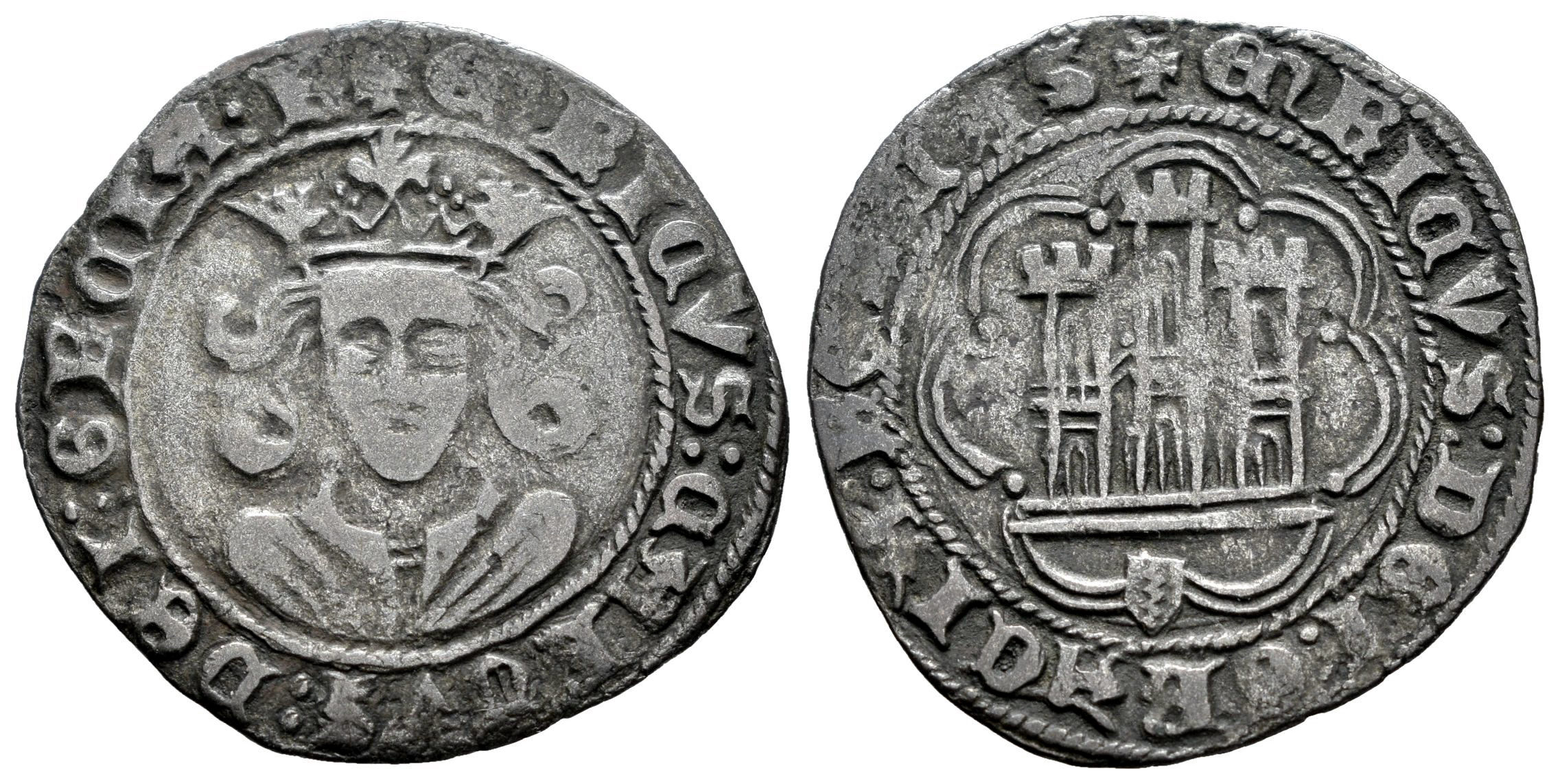 Reino de Castilla y León. Enrique IV (1454-1474). Cuartillo. Valladolid. (Bautista-No cita). (Imperatrix-No cita). Anv.: + ENRICVS : CARTVS : DEI : GRACIA : R. Rev.: + ENRICVS : DEI : GRACIA : REX : CAS. Ve. 3,50 g. Escudete bajo el castillo. Sin marcas a ambos lados del castillo. El lobulado cuenta con 7 arcos en lugar de los 8 habituales, y el escudete se sitúa en la intersección de las dos arcadas inferiores del lobulado, en lugar de estar centrado como en los ejemplares conocidos. Se trata de una variante inédita que, sin duda, será muy apreciada por los coleccionistas de este periodo. MBC. Est...600,00.