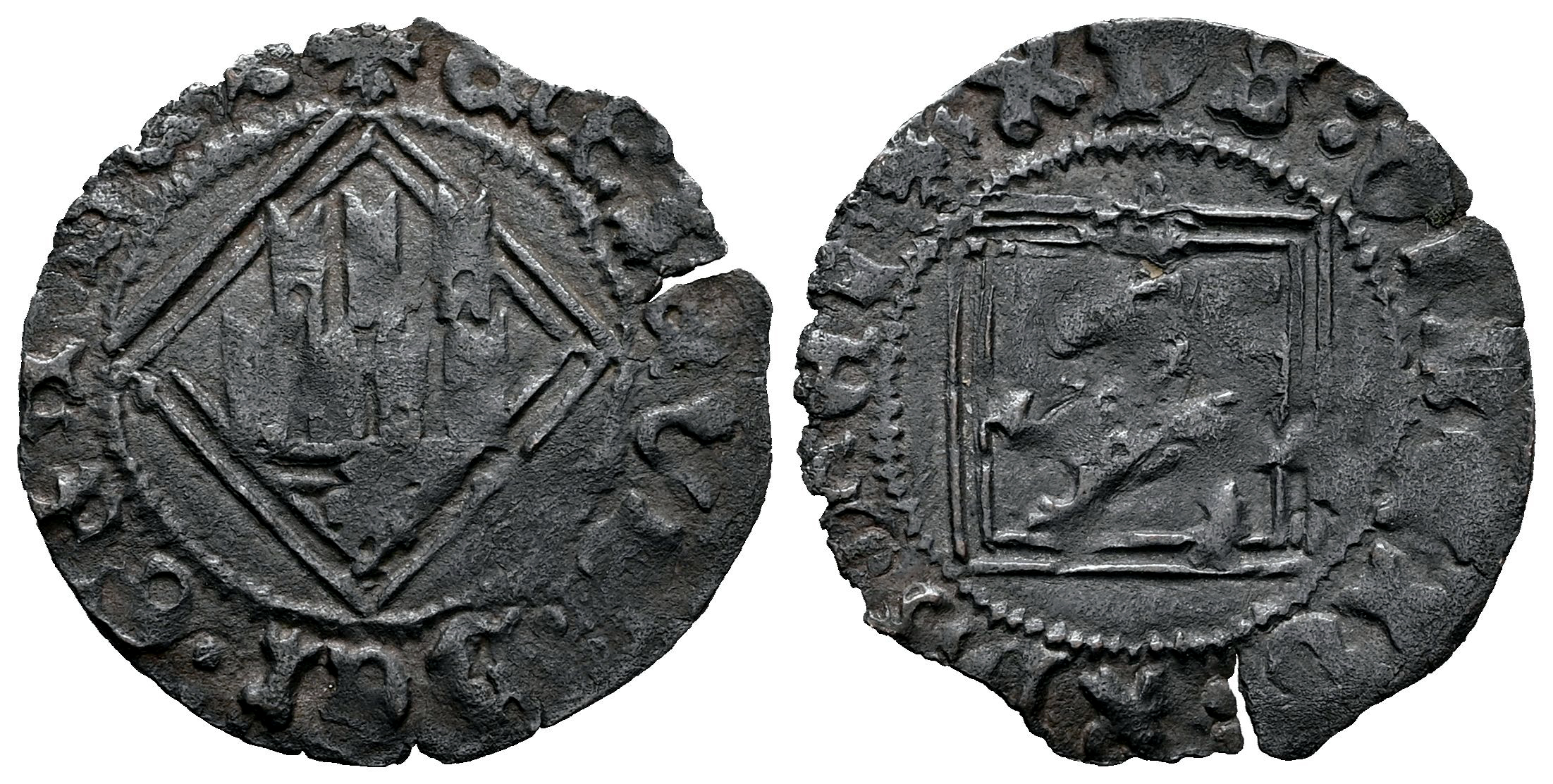 Reino de Castilla y León. Enrique IV (1454-1474). Blanca del rombo. Coruña. (Bautista-1080). Ve. 0,76 g. Venera bajo el castillo. MBC. Est...35,00.