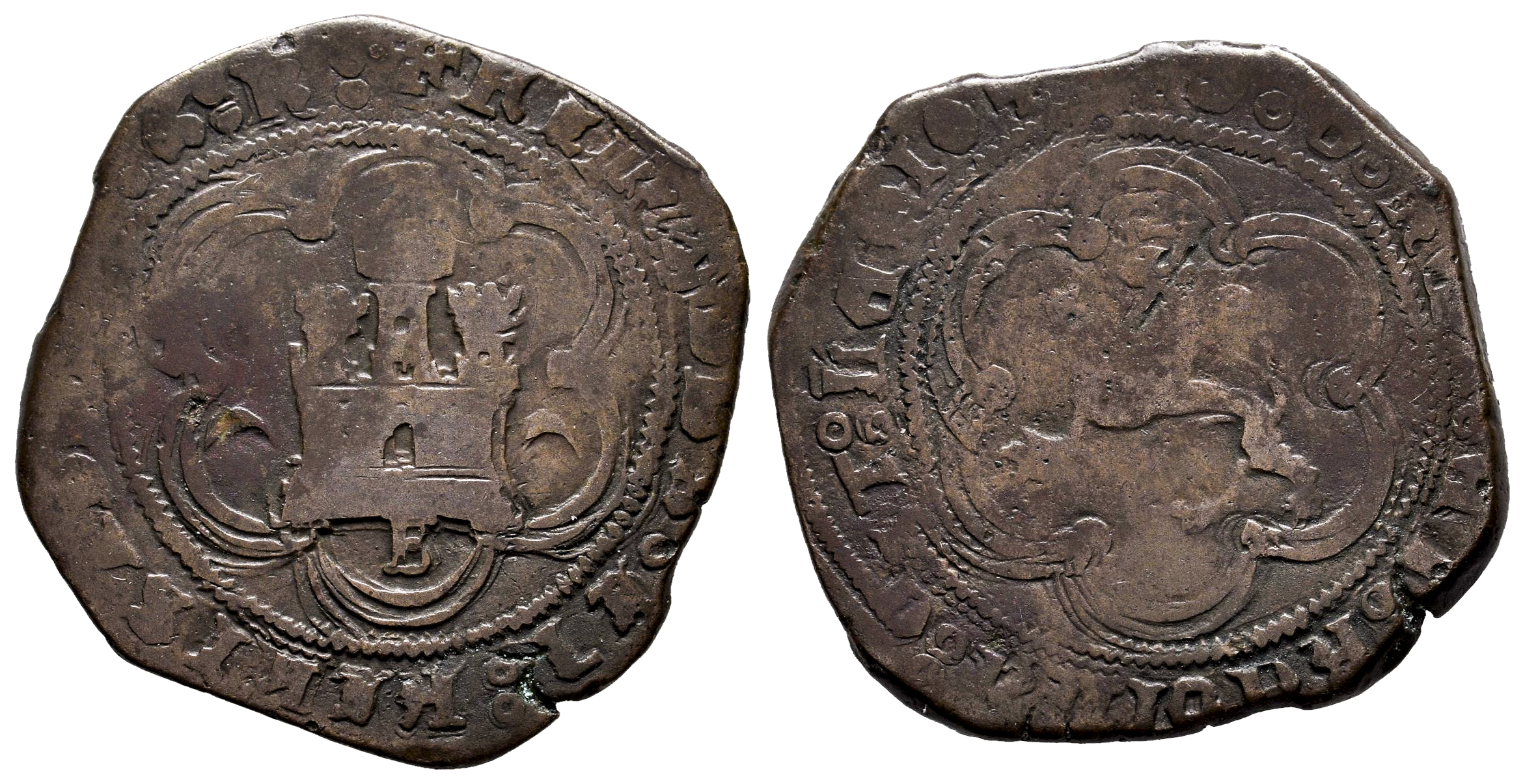 Fernando e Isabel (1474-1504). 4 maravedís. Burgos. (Cal-120). Ae. 8,87 g. Crecientes a los lados del castillo, debajo B. BC. Est...25,00.