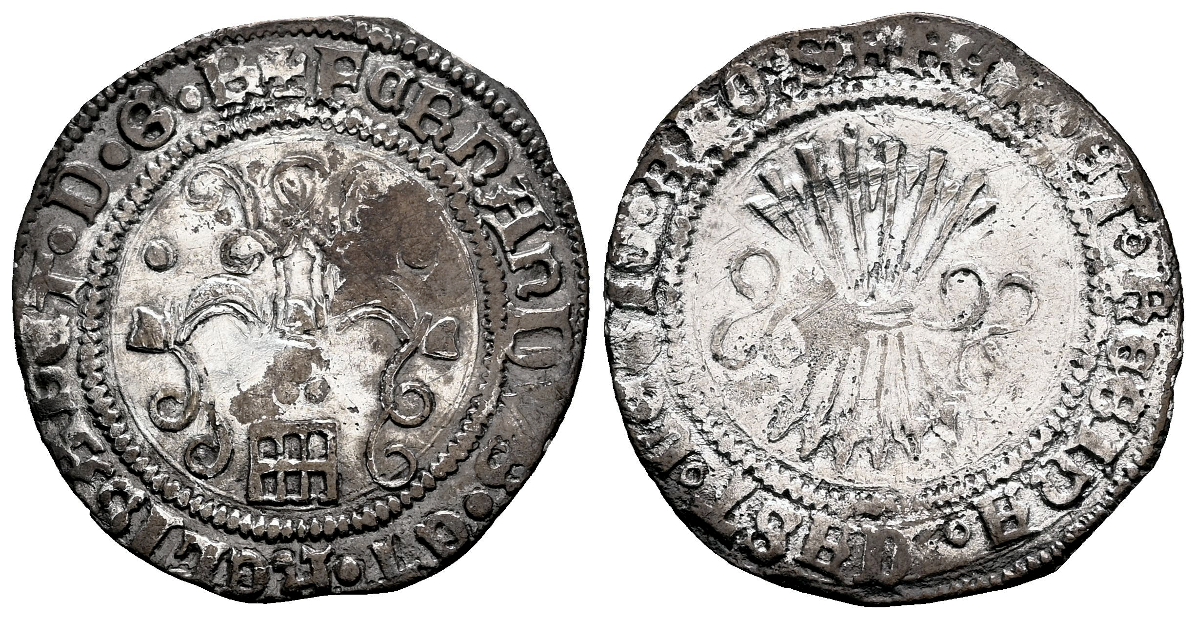 Fernando e Isabel (1474-1504). 1/2 real. Segovia. (Cal-244). Anv.: FERNANDVS • ET • hELISABET • D • G • R. Rev.: + REX ৹ ET ৹ REGINA ৹ CAST ৹ LEGIO ৹ ARO : S ৹. Ag. 1,52 g. Tres puntos sobre el acueducto y a los lados del yugo. Ligeramente limpiada. Escasa. MBC+. Est...120,00.