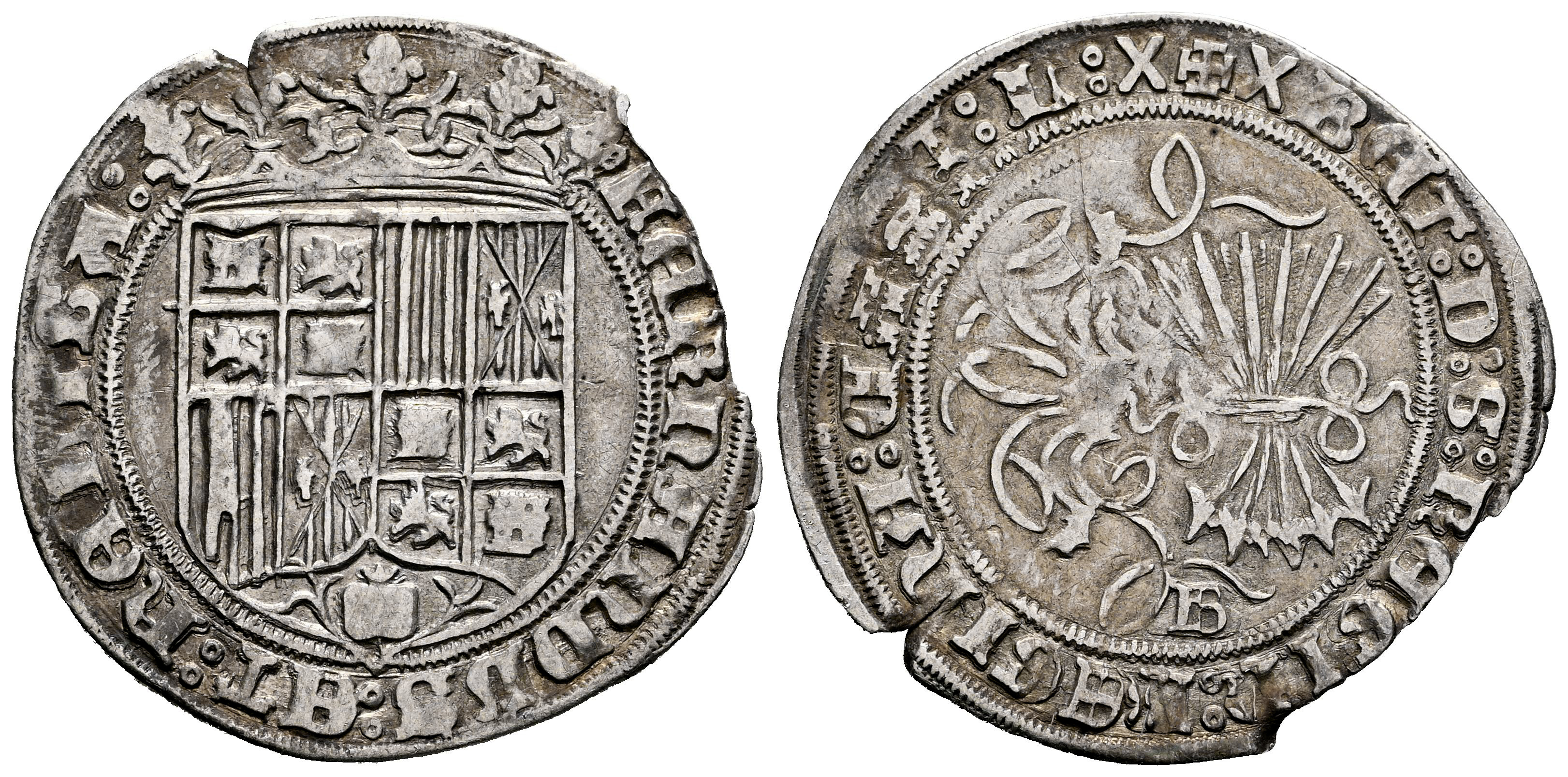 Fernando e Isabel (1474-1504). 1 real. Burgos. (Cal-318). Ag. 3,23 g. Aspas al inicio y al final de la leyenda del reverso. Leyendas completas . MBC. Est...100,00.