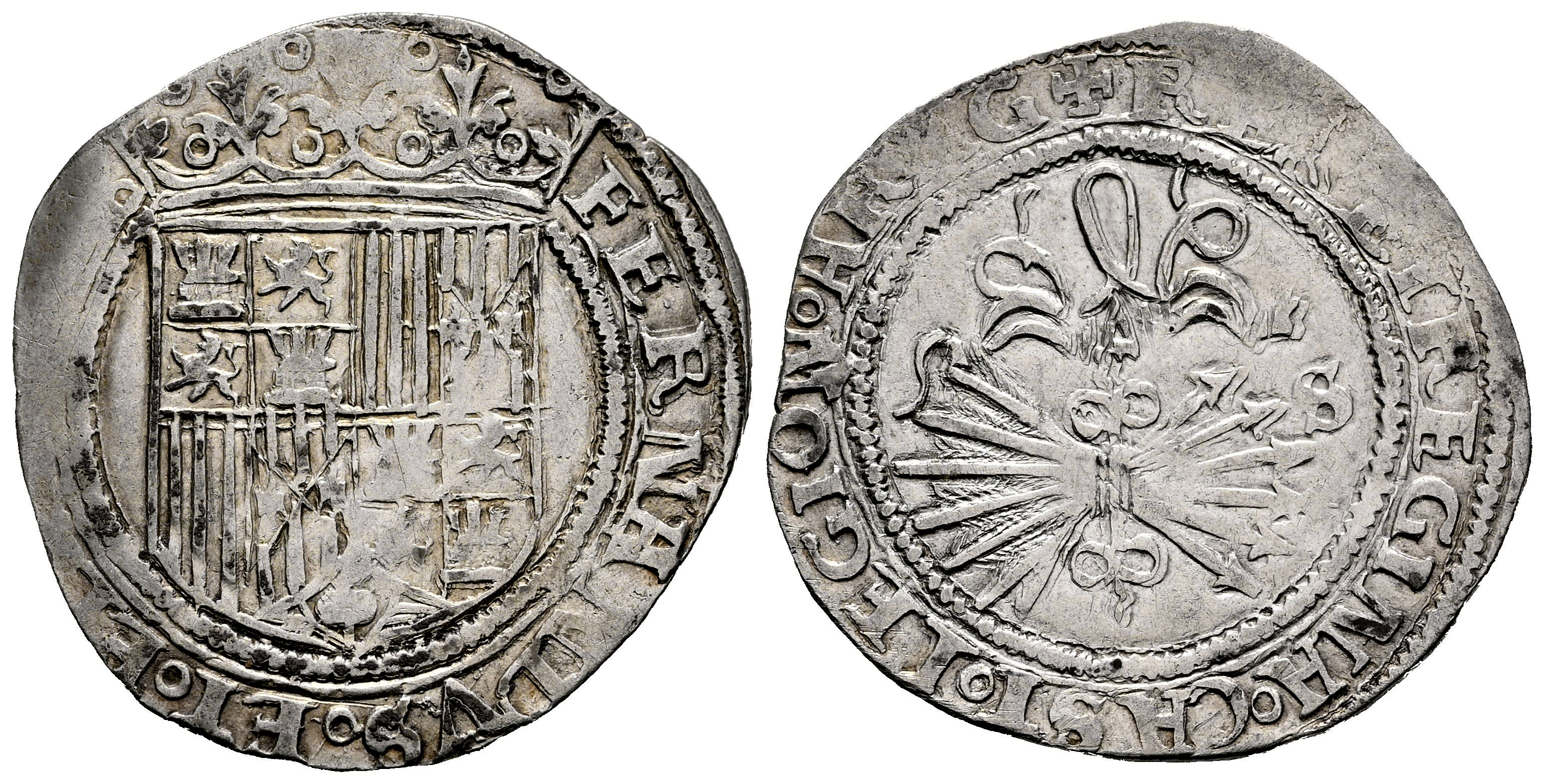 Fernando e Isabel (1474-1504). 1 real. Sevilla. (Cal-408). Ag. 3,29 g. Sin marcas en anverso, S en reverso. MBC-/MBC. Est...70,00.
