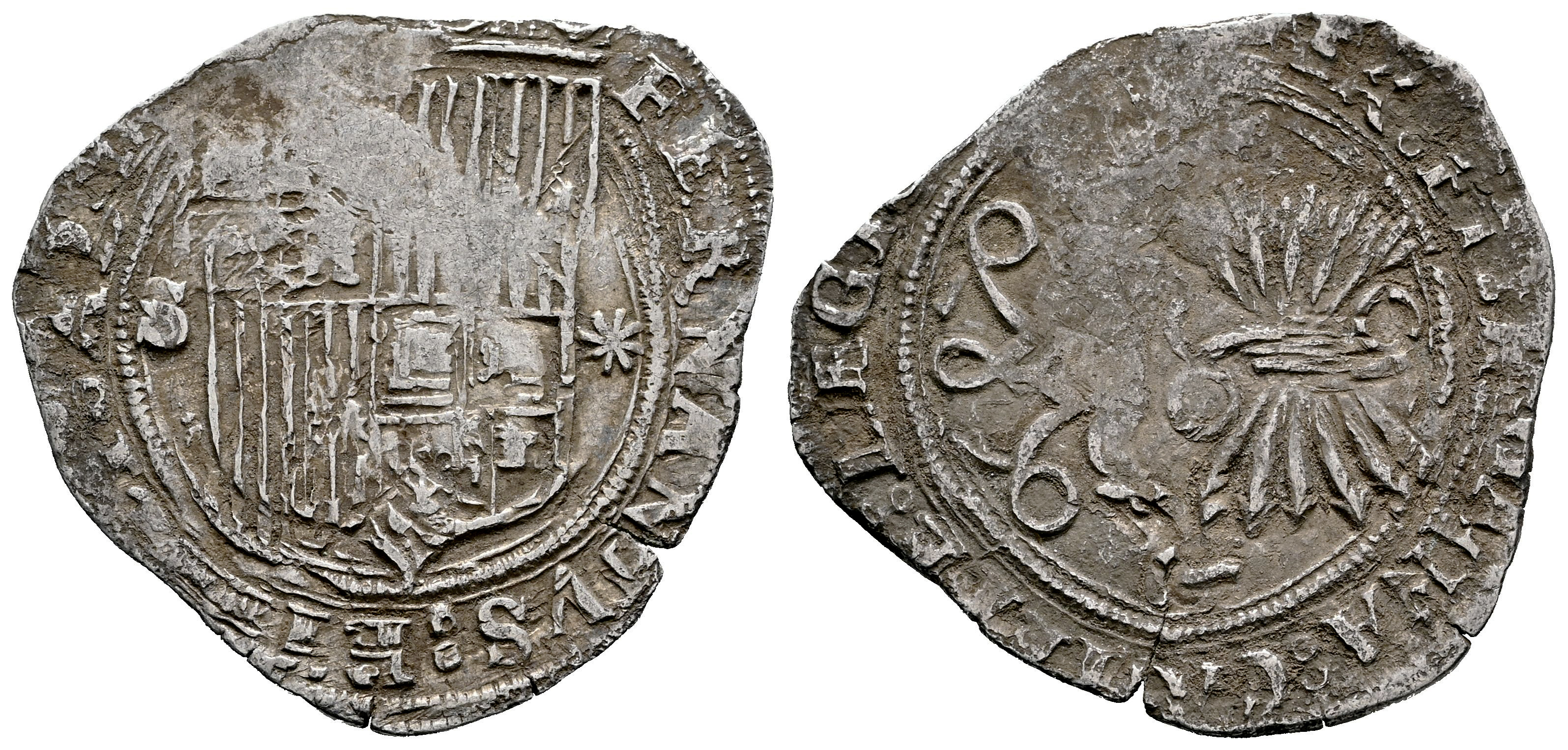 Fernando e Isabel (1474-1504). 1 real. Sevilla. (Cal-420). Ag. 3,31 g. S y estrella de 8 puntas a los lados del escudo. MBC-. Est...75,00.