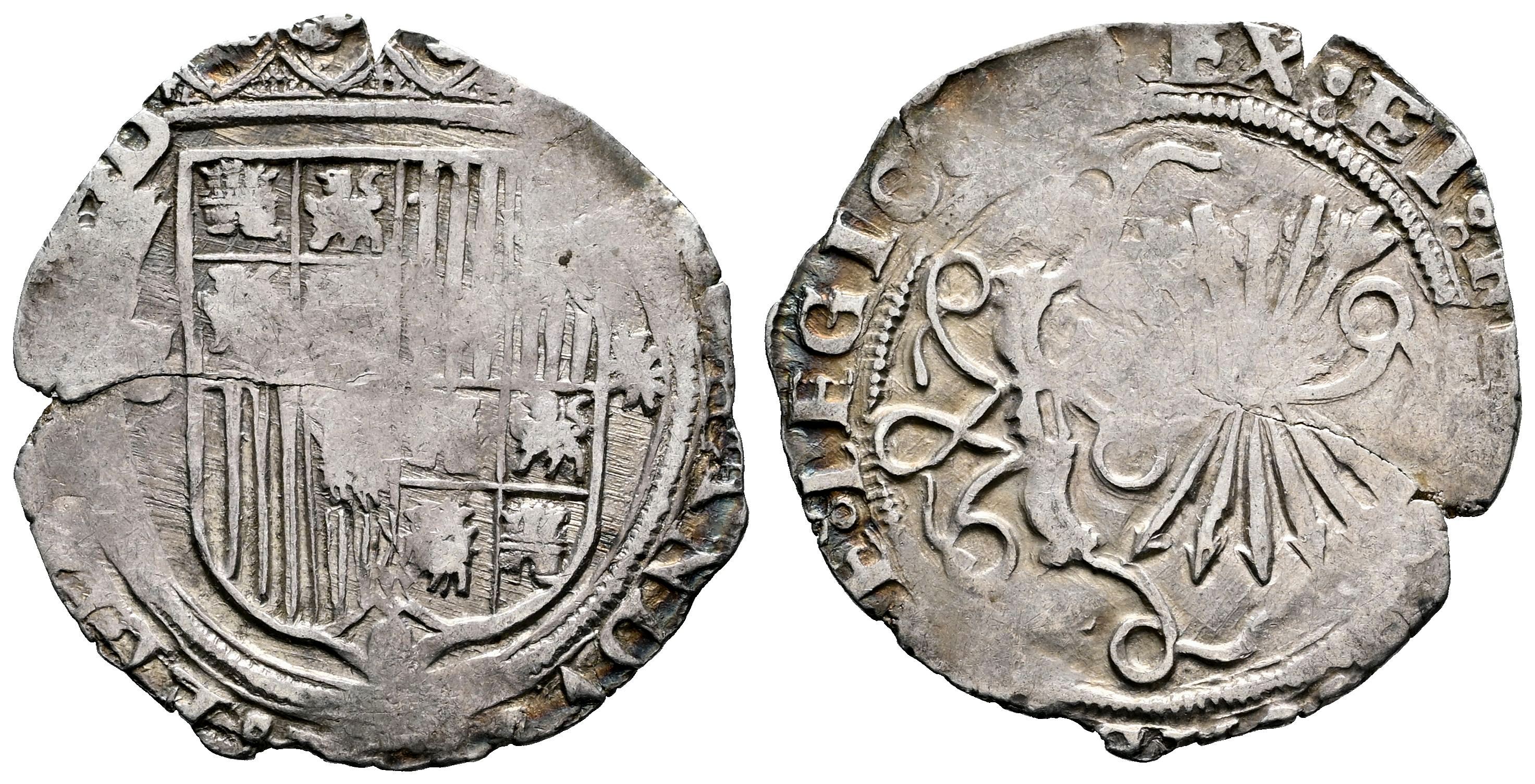 Fernando e Isabel (1474-1504). 1 real. Sevilla. (Cal-420). Ag. 3,38 g. S y estrella a los lados del escudo. Grieta. MBC-. Est...45,00.