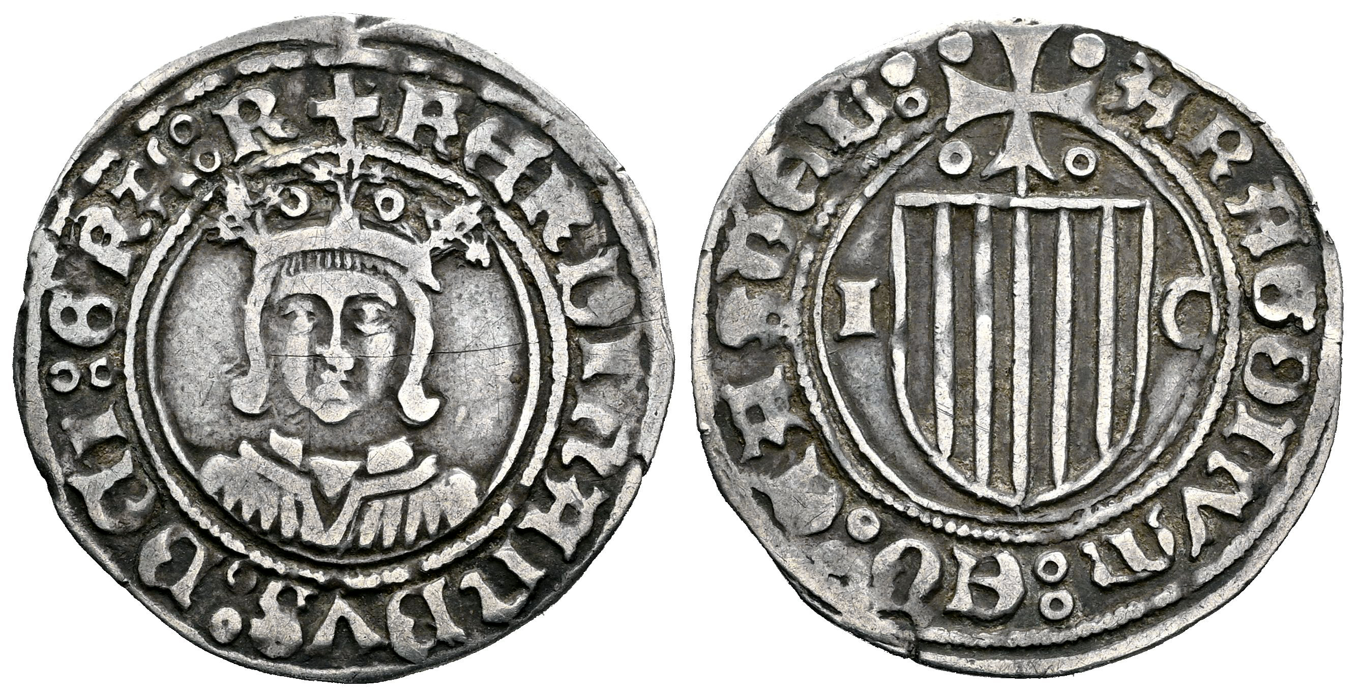 Fernando II (1479-1516). 1/2 real. Zaragoza. (Cal-52). (Cru V.S-1305). Anv.: + FERDINANDVS : DEI : GRA : R. Rev.: ARAGONVM : ET : CASTEL : . Ag. 1,67 g. Ligera pátina. Escasa. MBC+. Est...200,00.