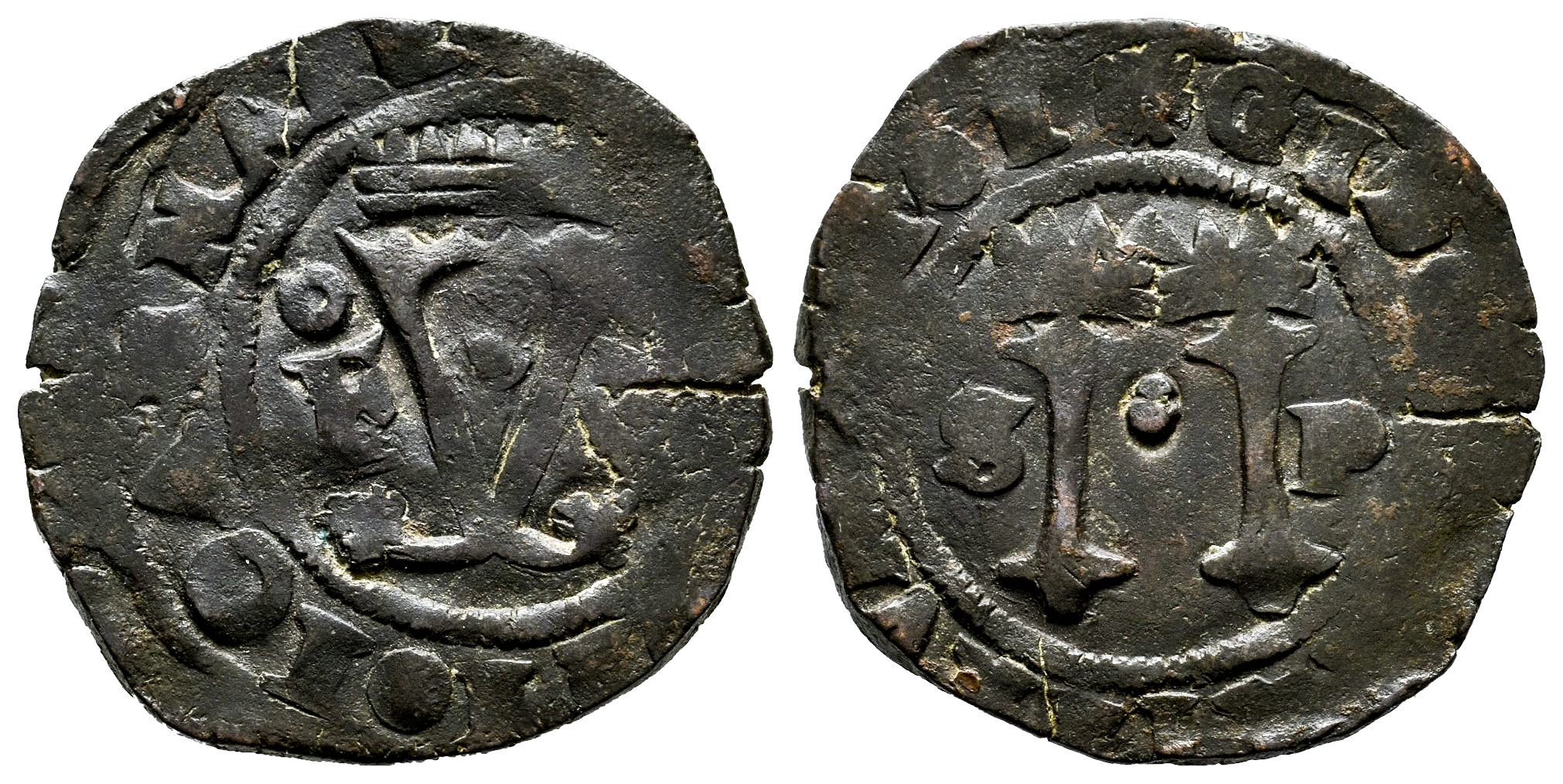 Juana y Carlos (1504-1555). 4 maravedís. ND (ca. 1542). Santo Domingo. F / S-P. (Cal-Tipo 14). Ae. 4,22 g. Valor no visible. MBC. Est...60,00.