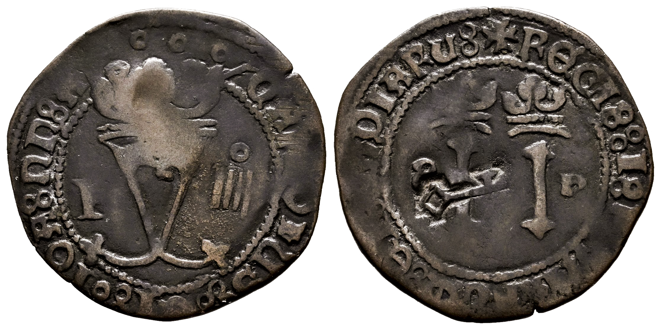 Juana y Carlos (1504-1555). 2 maravedís. ND (ca. 1542). Santo Domingo. F/S-P. (Cal-35, atribuido a la Isla de Santiago, en Jamaica). (Yanko-KPV 4.0). Ae. 3,04 g. Resello llave, bien marcado sobre el reverso de una moneda de 4 maravedís de Juana y Carlos, aplicado en 1577 por instrucción de la Audiencia de Santo Domingo, para devaluar la pieza a 2 maravedís. Acuñación muy redonda con las leyendas casi completas. Rara. MBC+. Est...180,00.
