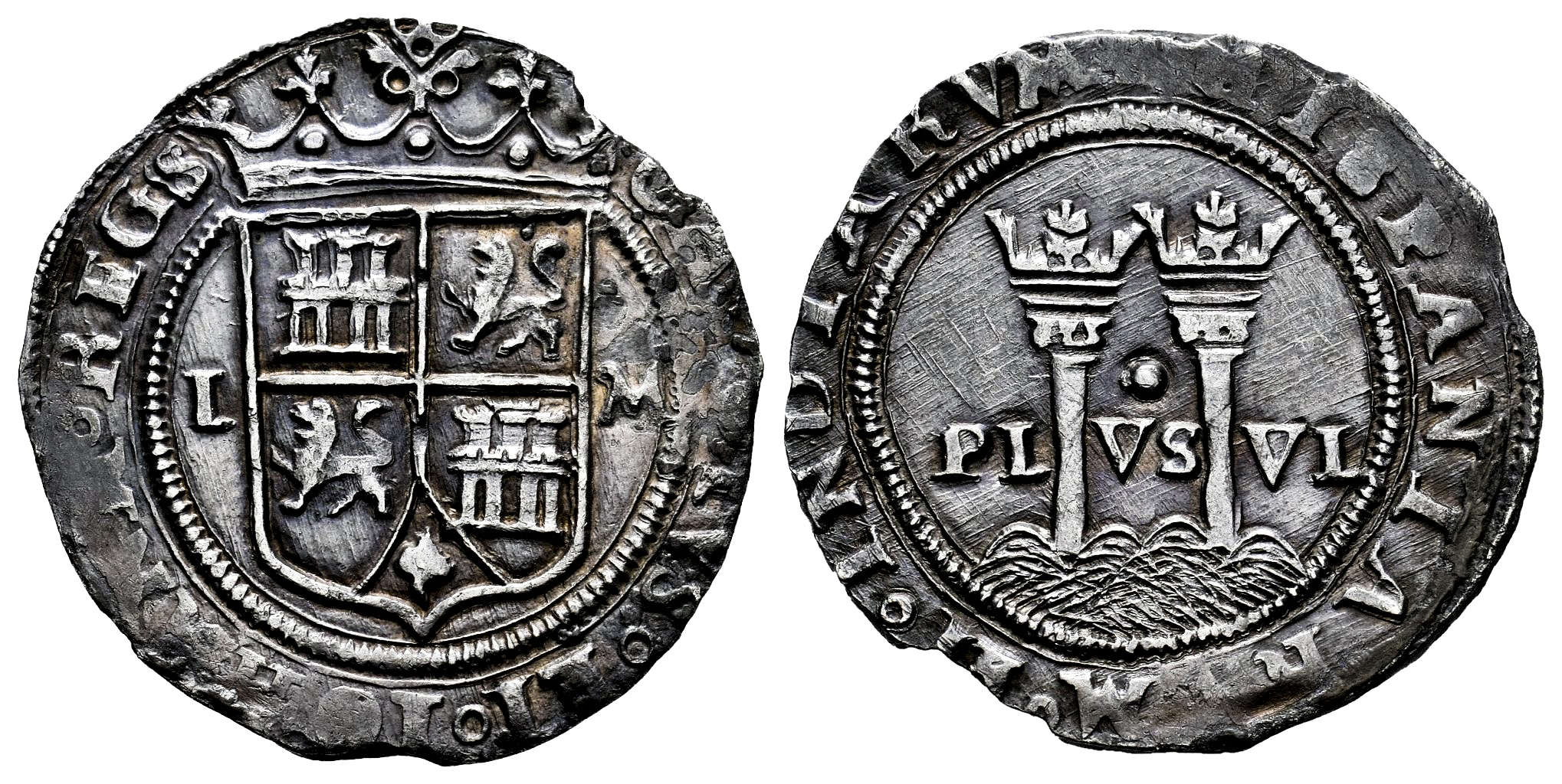 Juana y Carlos (1504-1555). 1 real. ND (1548-1556). México. L. (Cal-73). Ag. 3,32 g. Buen ejemplar con una ligera oxidación en los bordes y fuertemente acuñada en los centros con las leyendas casi completas. Preciosa pátina. Escasa así. EBC. Est...500,00.