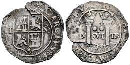Juana y Carlos (1504-1555). 2 reales. ND (1548-1556). México. L. (Cal-102). Ag. 6,86 g. Cospel irregular. Grieta de acuñación. MBC+. Est...300,00.