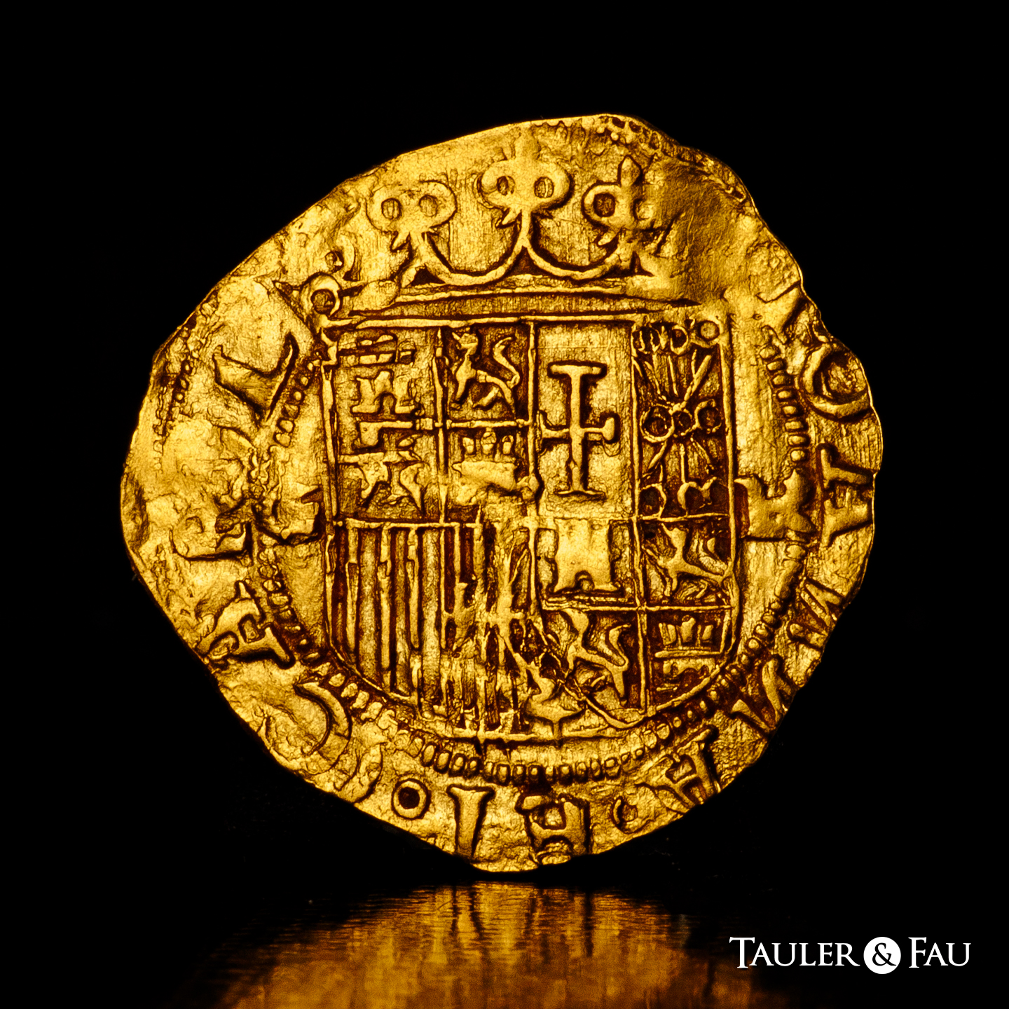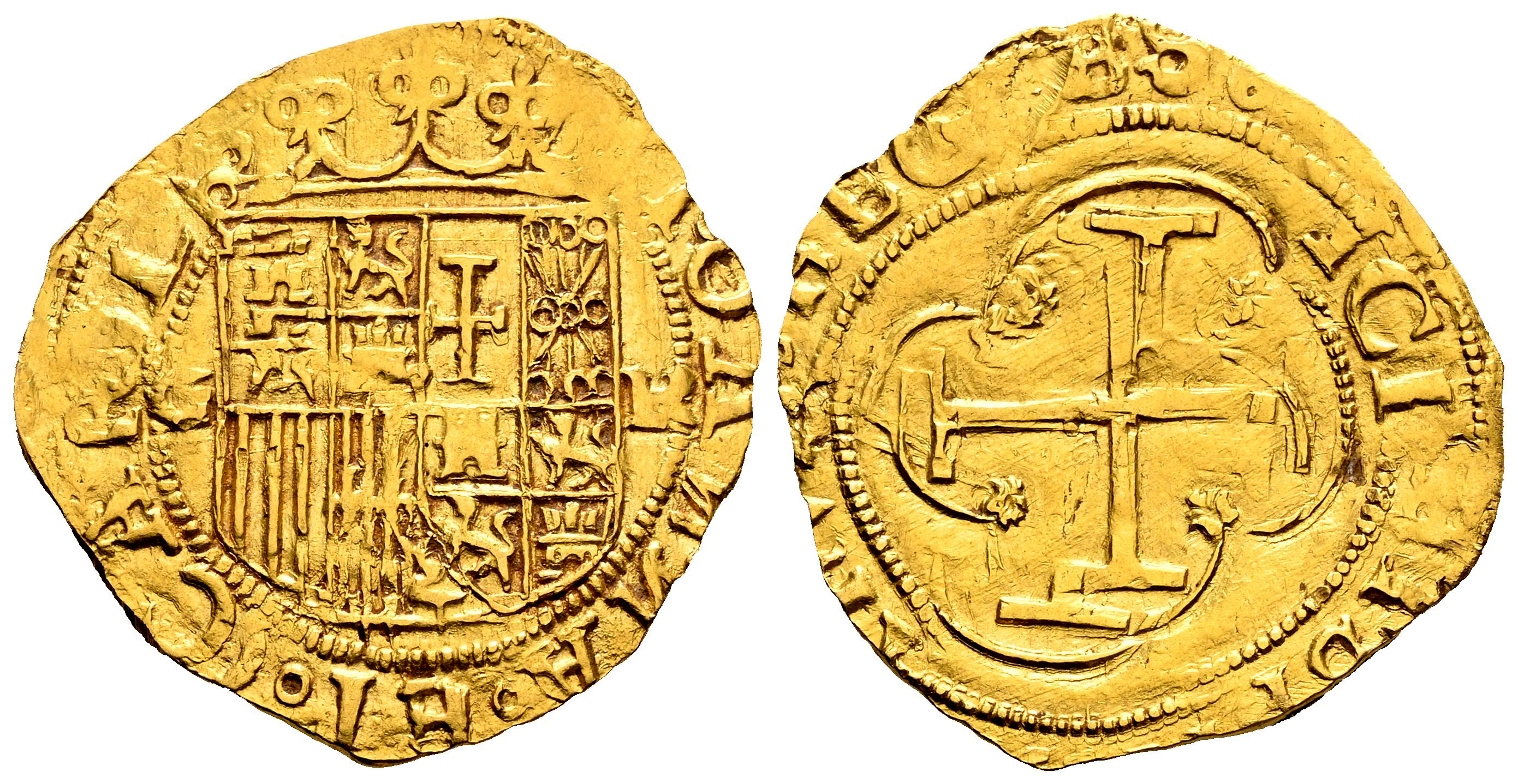 Juana y Carlos (1504-1555). 1 escudo. ND (ca. 1556). Granada. R. (Cal-182). Au. 3,21 g. Ensayador R abierta, parece una K. Ligera doble acuñación en reverso. Bonito color. Rara. EBC. Est...1500,00.