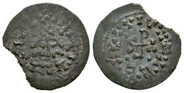 Egica y Witiza (698-702). Tremissis. Ispali (Sevilla). Anv.: Leyenda de dificil lectura. Rev.: + VVITTIZ·A·R·E·X. La leyenda comienza a las 9h. Monograma con la L invertida. Ae. 1,37 g. Cospel levemente faltado. Muy rara acuñación falsa de época. MBC/MBC+. Est...200,00.