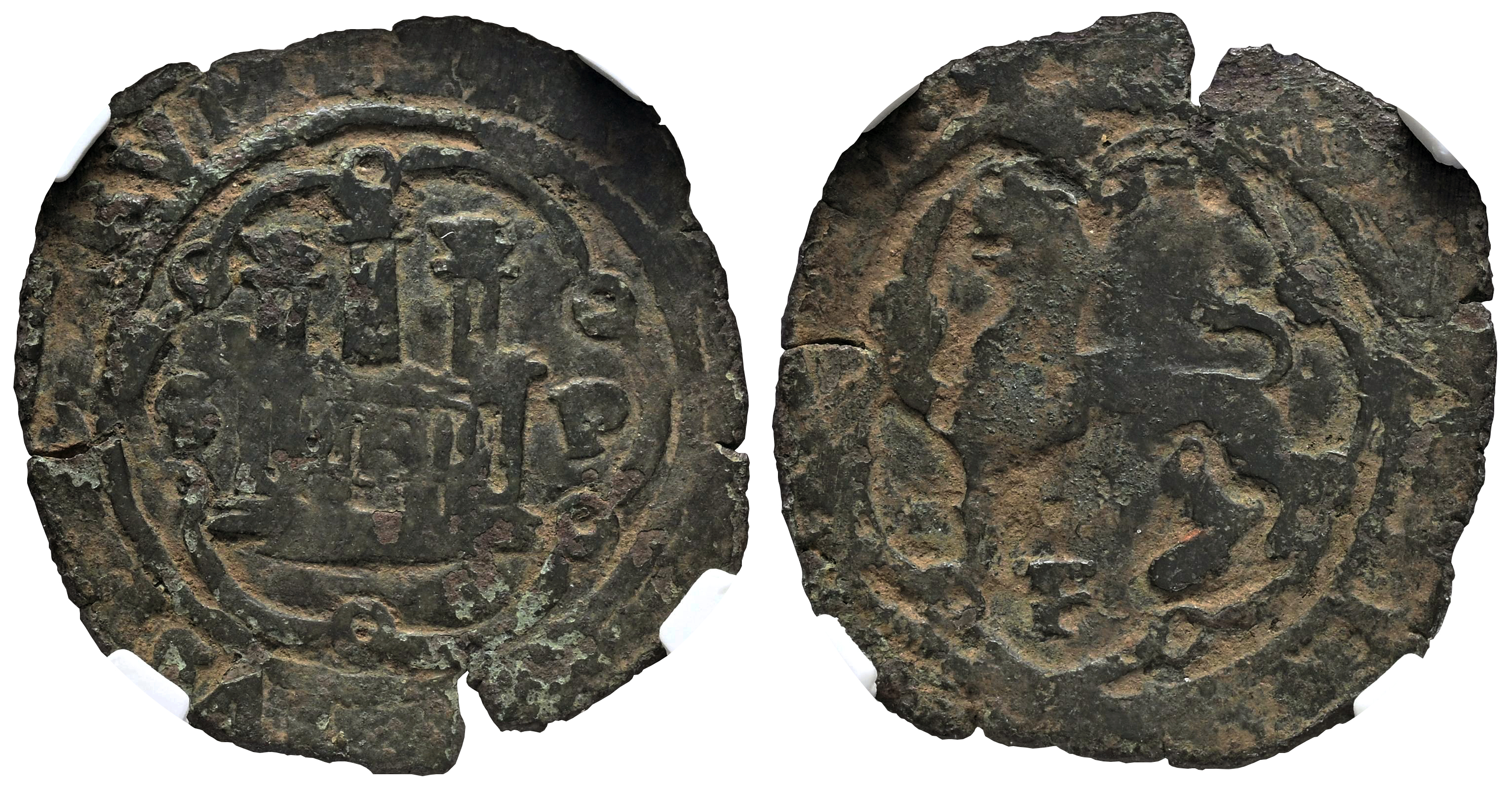 Carlos I (1516-1556). 4 maravedís. ND (ca. 1542). Santo Domingo. F. (Cal-48). Ae. Castillo entre S y P. Encapsulada por NGC como VF Details, Environmental damage. Erróneamente clasificada por NGC como 2 maravedís. Est...90,00.