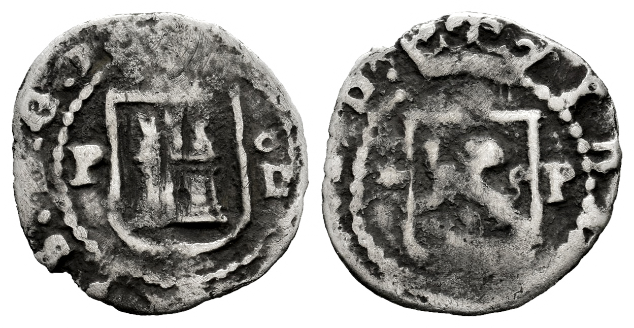Felipe II (1556-1598). 1/4 real. ND (1577-1588). Lima. D. (Cal-99 var). Ag. 0,60 g. P-oD en anverso, ★-P en reverso. Rara. MBC. Est...200,00.