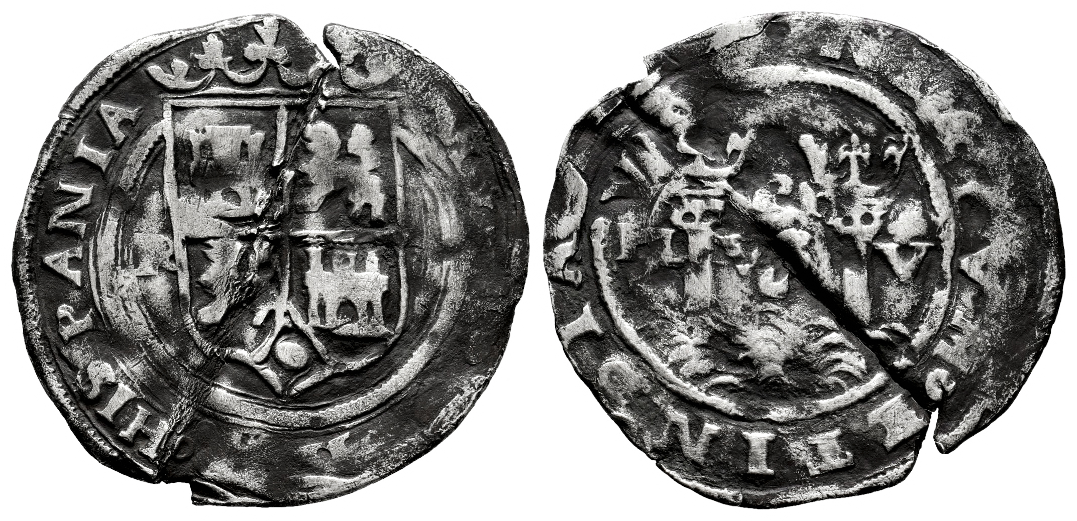Felipe II (1556-1598). 1 real. ND (1568-1570). Lima. R (Alonso Rincón). (Cal-209). Ag. 2,86 g. Ensayador R a la izquierda del escudo, PL-VS-V en reverso. Leyendas HISPANIA / NIARVM. Desdoblada. Grieta. Rara. BC+. Est...150,00.