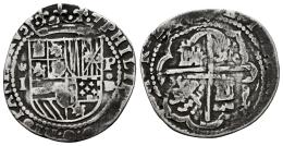 Felipe II (1556-1598). 1 real. ND (1577-1588). Lima. D (Diego de la Torre). (Cal-212). Ag. 3,05 g.  ✶/I a la izquierda del escudo y P/oD a la derecha. Visible parte del nombre del rey. Rara. MBC-. Est...120,00.