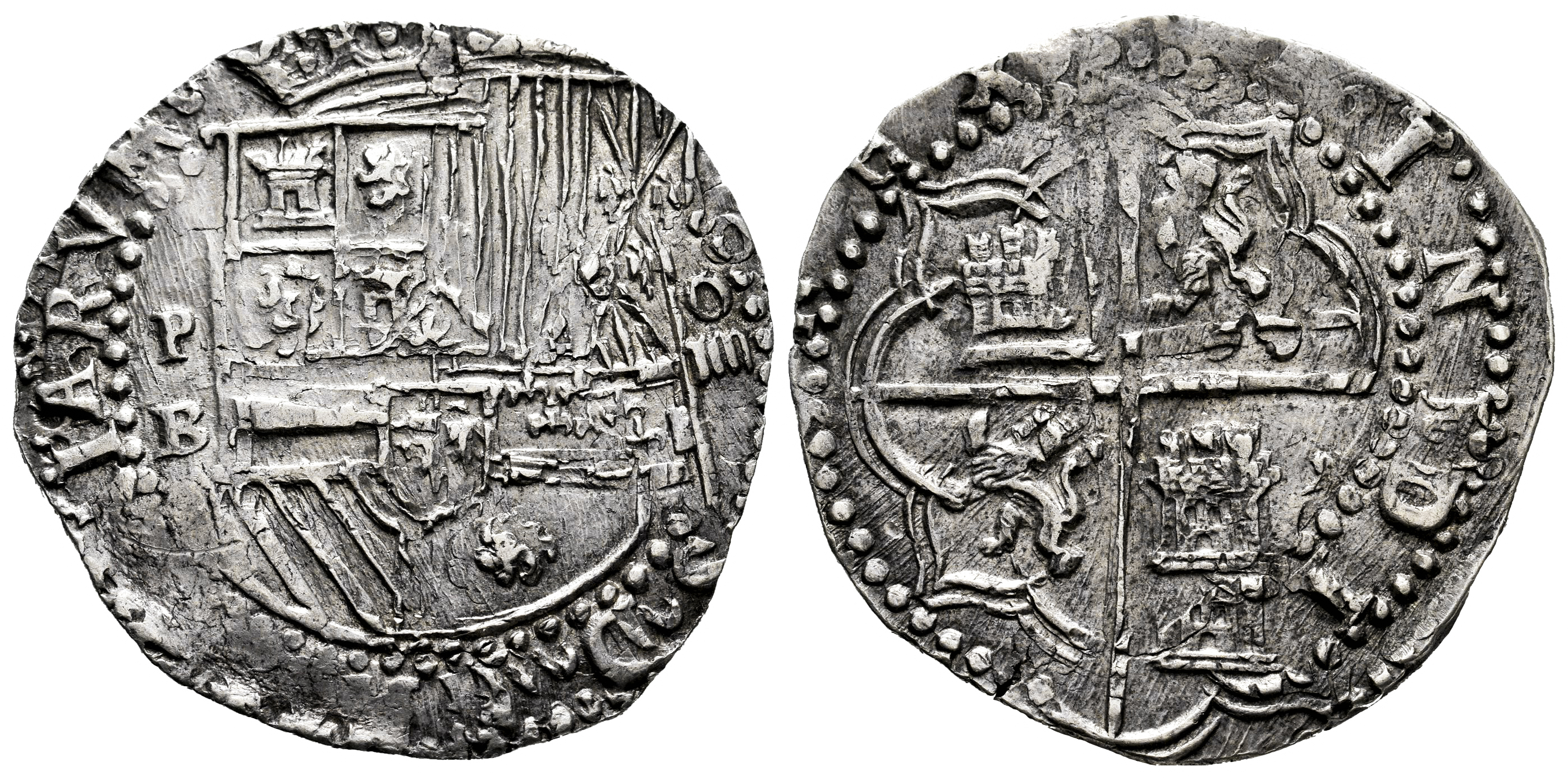 Felipe II (1556-1598). 4 reales. ND (1578-1595). Potosí. B. (Cal-525). Ag. 13,80 g. Ligera doble acuñación. Buen ejemplar. Escasa en esta conservación. EBC-/MBC+. Est...250,00.