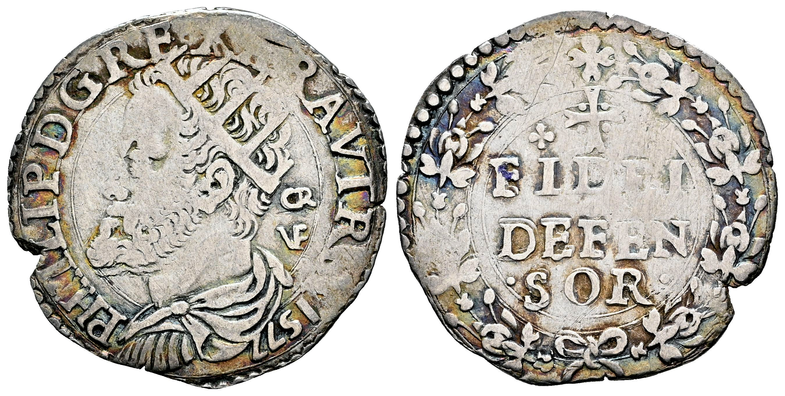 Felipe II (1556-1598). Carlino. 1577. Nápoles. GR/VF. (Tauler-627). (Vti-329). (Mir-181/3). Ag. 2,85 g. Suaves rayitas. Escasa. MBC-. Est...120,00.