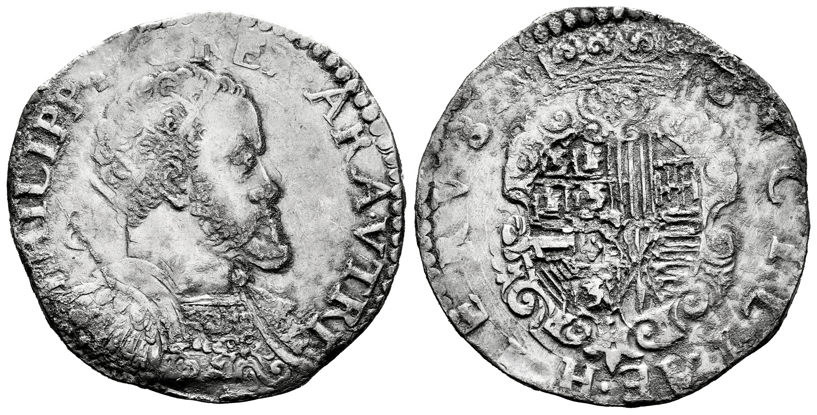 Felipe II (1556-1598). 1/2 ducado. Nápoles. (Tauler-682 similar). (Vti-359 similar). (Mir-174/5 similar). Ag. 14,50 g. Fecha no visible. Oxidaciones superficiales. MBC+. Est...400,00.