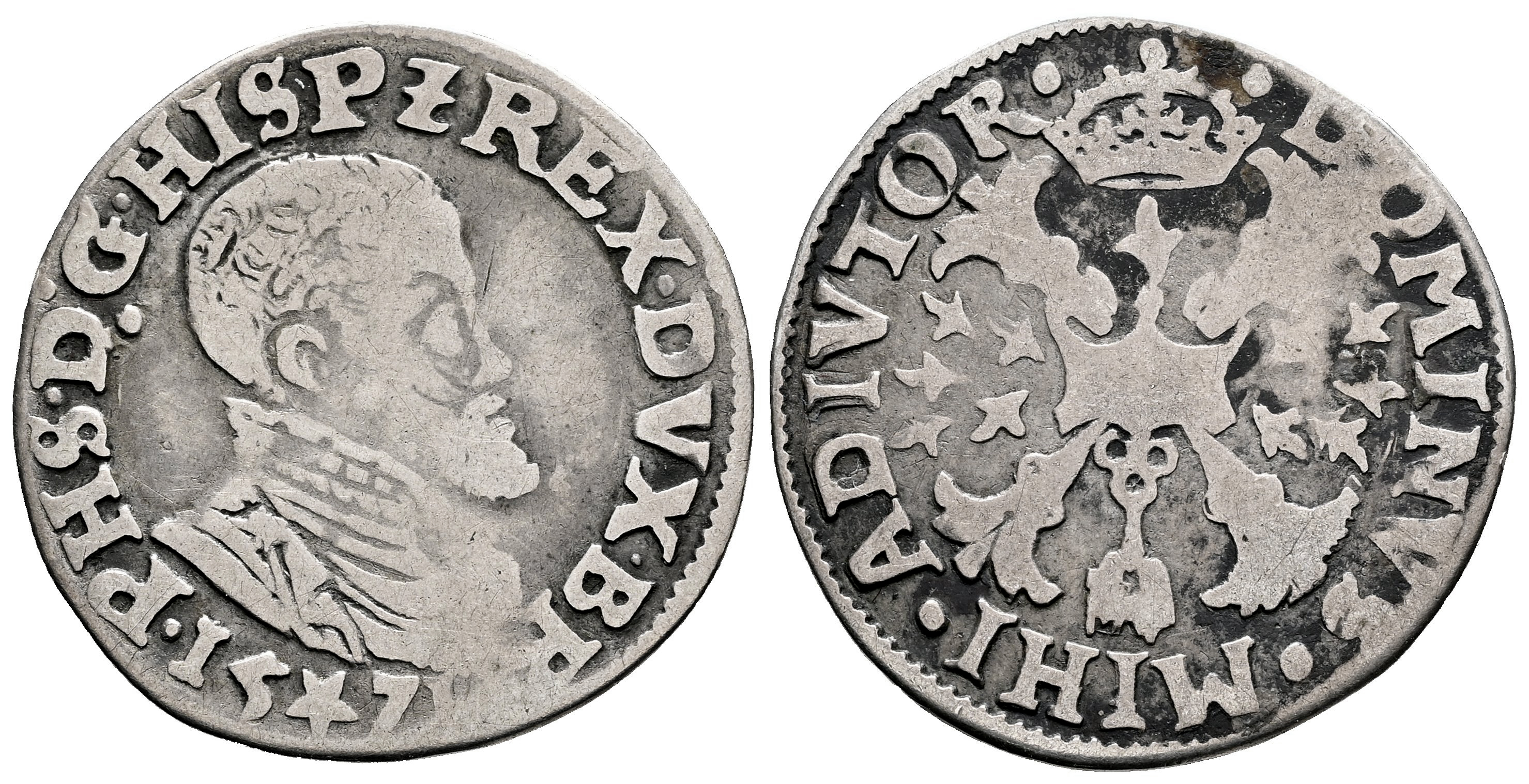 Felipe II (1556-1598). 1/10 Philipsdaalder. 1571. Maastricht. (Vanhoudt-308). Ag. 3,05 g. MBC-. Est...45,00.