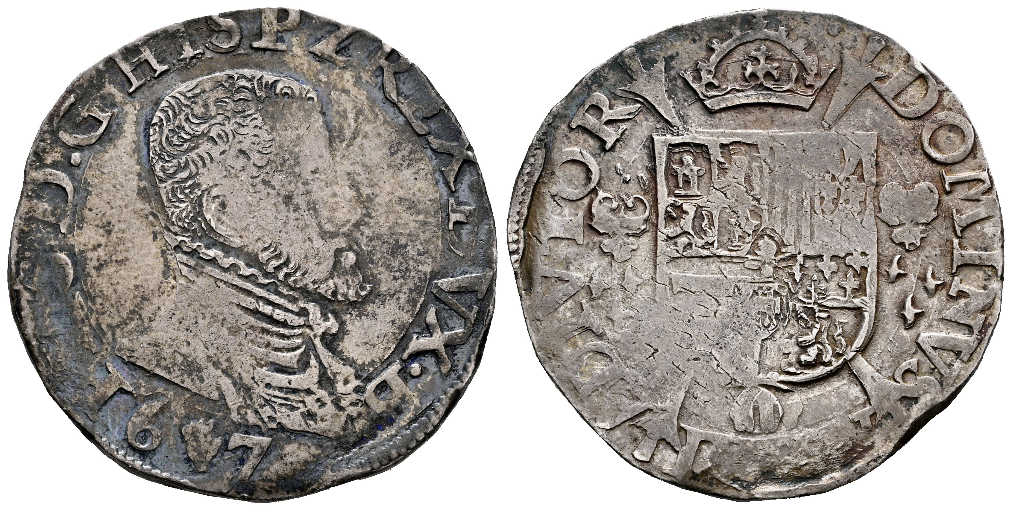 Felipe II (1556-1598). 1/5 de escudo felipe. 167 (1567). Amberes. (Tauler-914 var). (Vti-856 var). Ag. 6,72 g. Error en la fecha, 167 por 1567. MBC. Est...75,00.