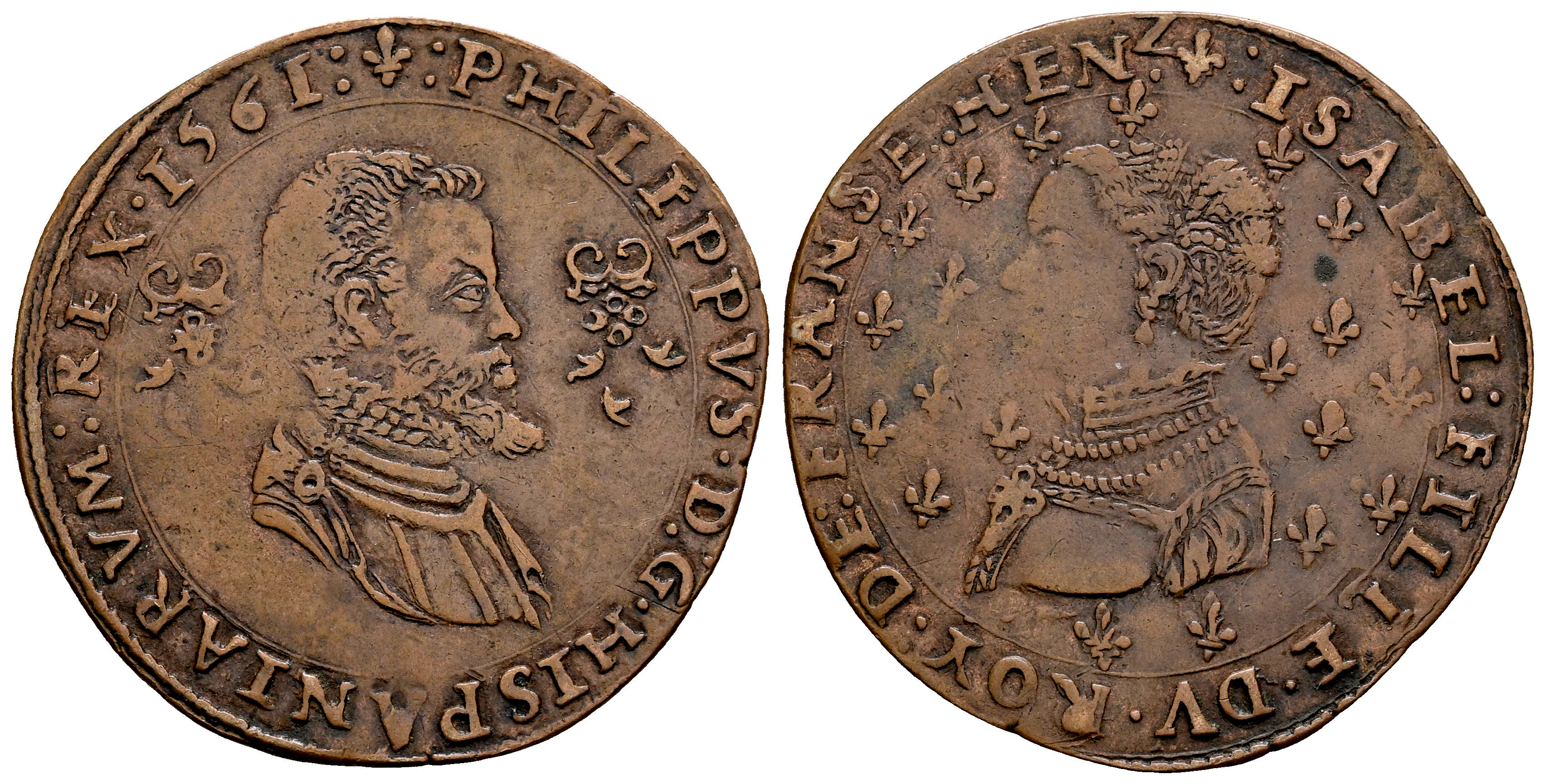 Felipe II (1556-1598). Jetón. 1561. (Dugn-2277). Ae. 4,05 g. Boda con Isabel de Valois. Escasa. MBC+. Est...100,00.