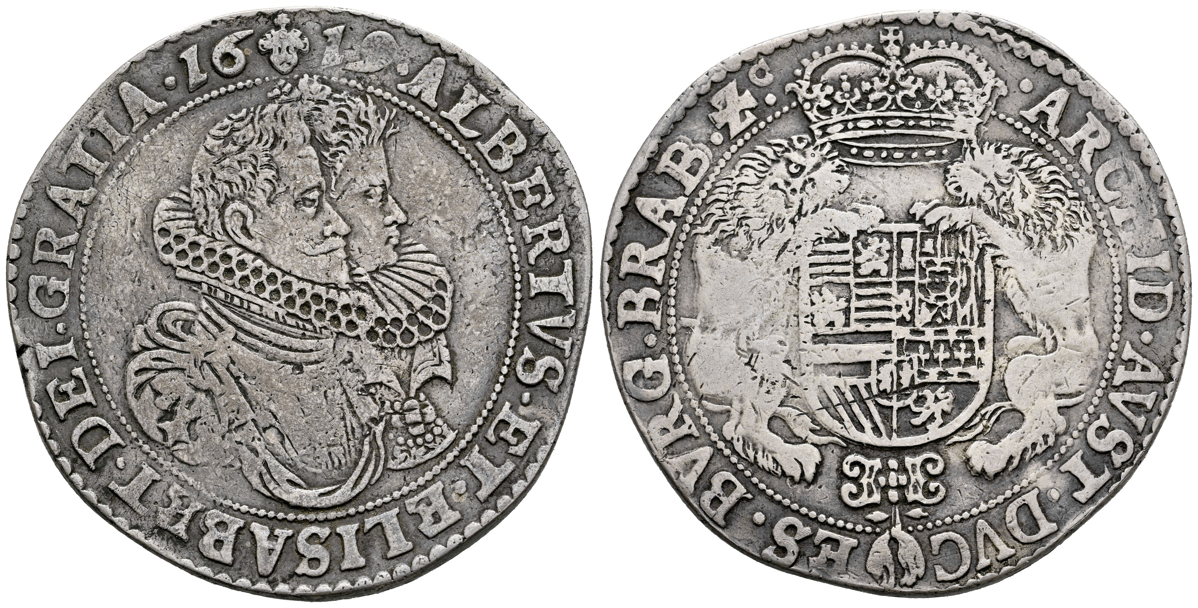 Alberto e Isabel (1598-1621). 1 ducatón. 1619. Bruselas. (Tauler-1742). (Vti-394). (Vanhoudt-617.AN). Ag. 31,50 g. Ligero tono. MBC+/MBC. Est...500,00.