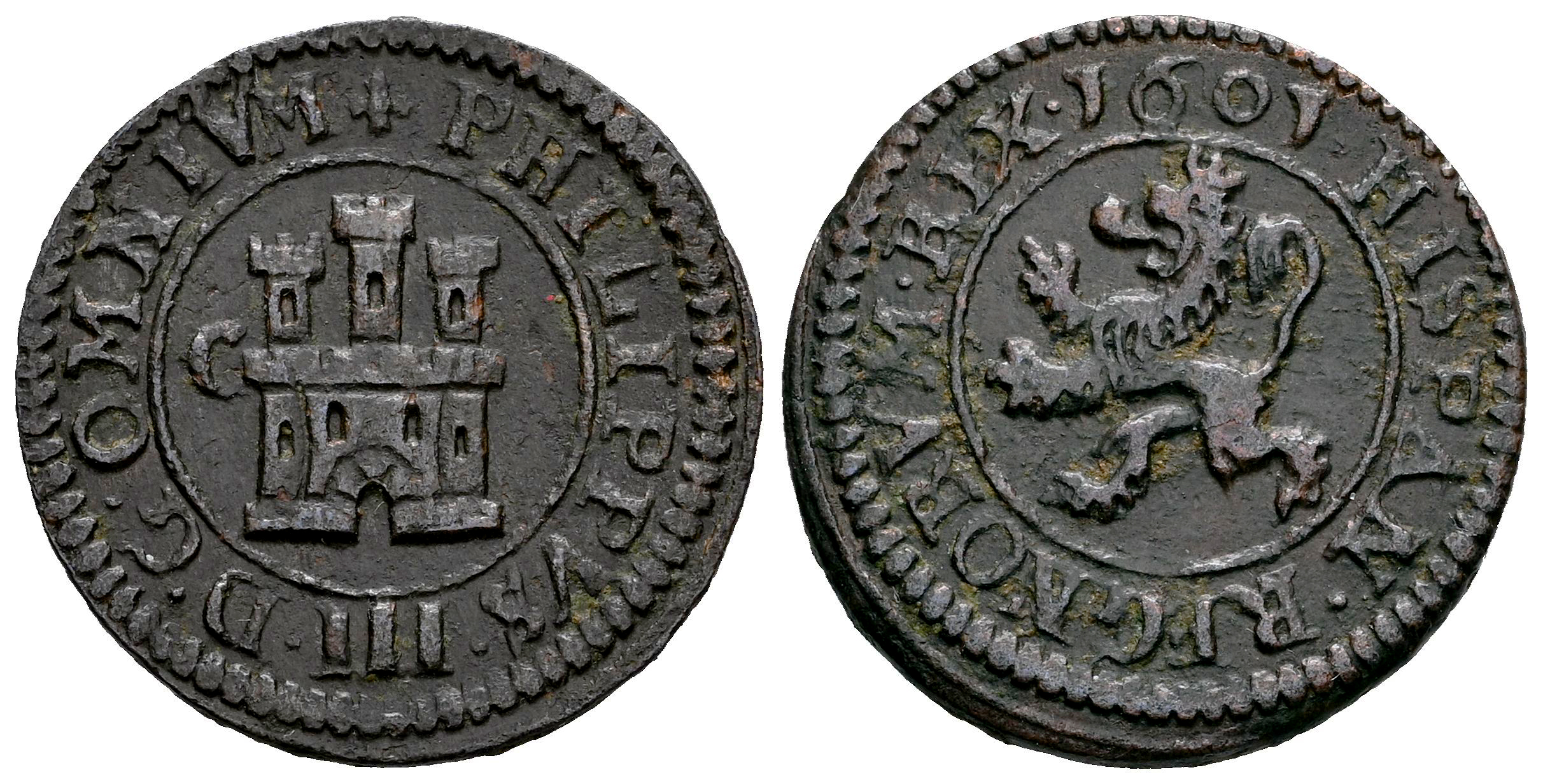 Felipe III (1598-1621). 2 maravedís. 1601. Segovia. C. (Cal-182). (Jarabo-Sanahuja-C39). Ae. 3,18 g. Sin valor ni marca de ceca. MBC+. Est...50,00.