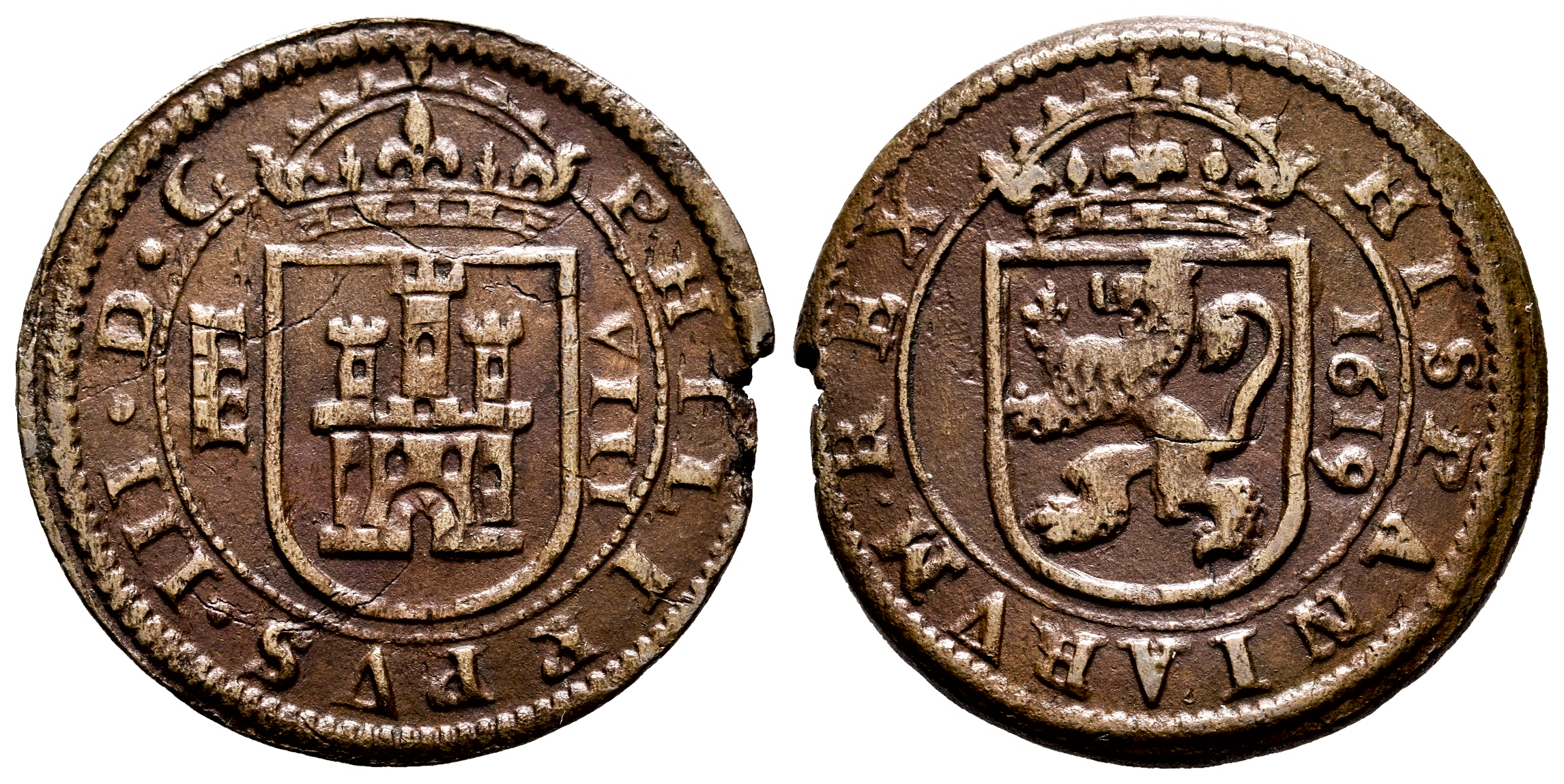 Felipe III (1598-1621). 8 maravedís. 1619. Segovia. (Cal-339). (Jarabo-Sanahuja-D231). Ae. 5,88 g. MBC. Est...25,00.