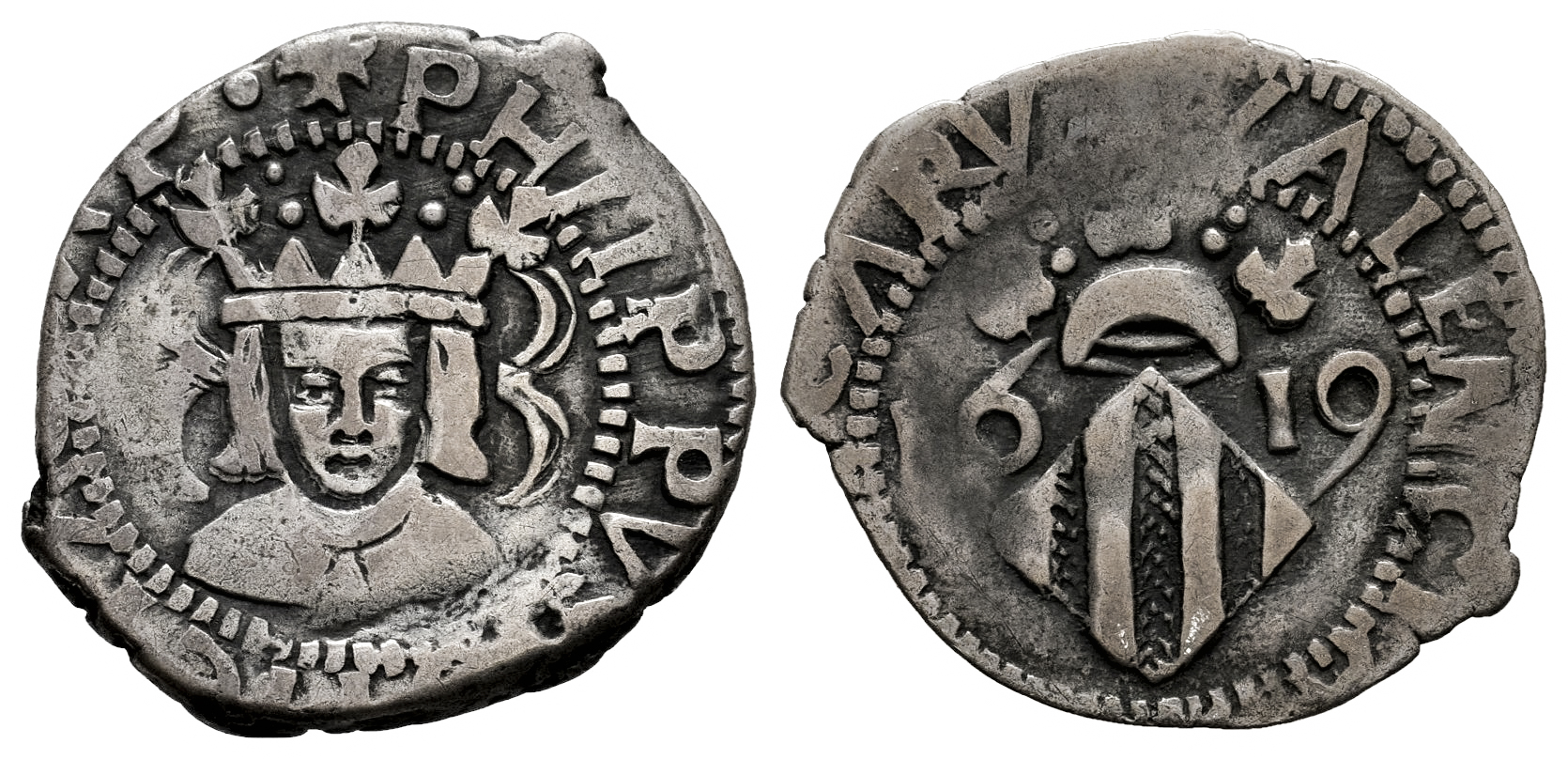 Felipe III (1598-1621). Dieciocheno. 1619. Valencia. (Cal-566). Ag. 1,98 g. MBC. Est...60,00.