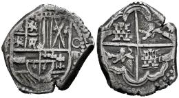Felipe III (1598-1621). 4 reales. (1618)?. Potosí. T. (Cal-Tipo 149). Ag. 13,51 g. Fecha no visible. Águila en lugar de león, en las armas de Flandes. MBC+. Est...120,00.