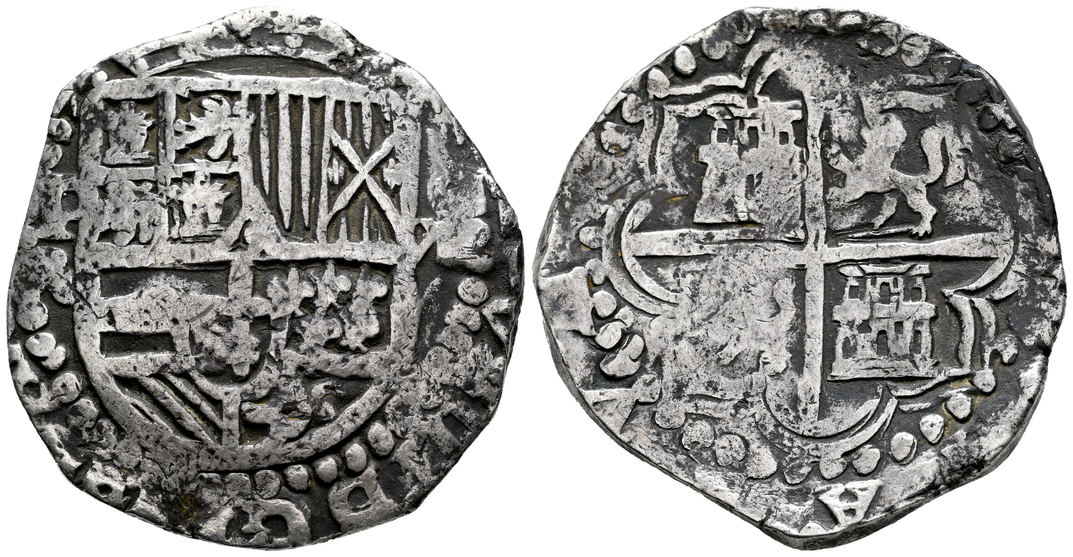 Felipe III (1598-1621). 8 reales. ND (1603-1612). Potosí. R. (Cal-912). Ag. 27,15 g. Valor VIII. MBC-. Est...300,00.